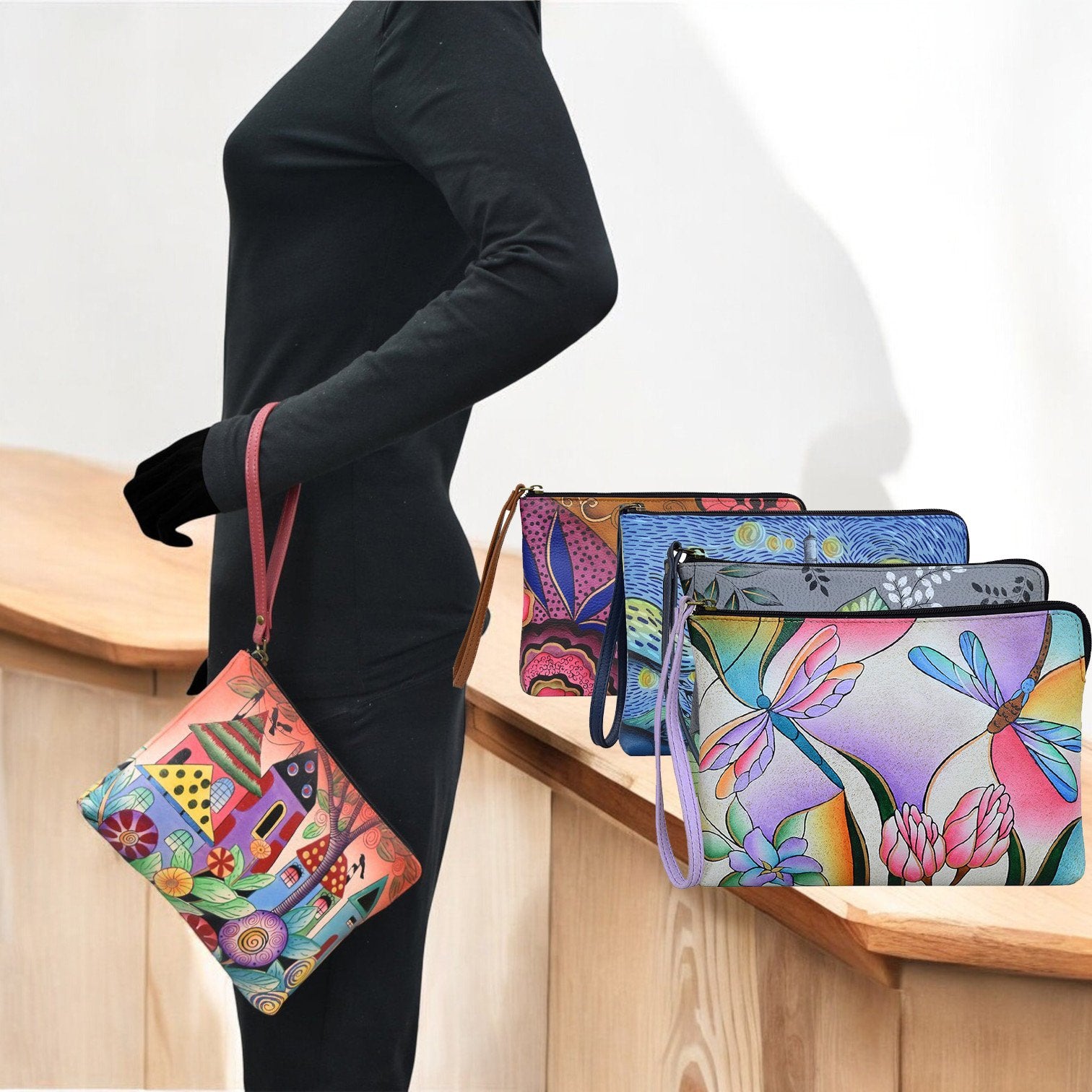 Anna by Anuschka Large Artistic Wristlet Festival or Evening Clutch
