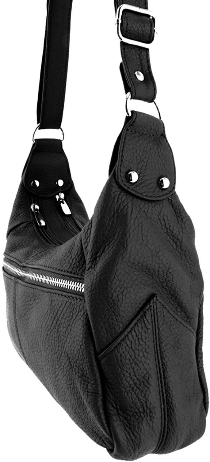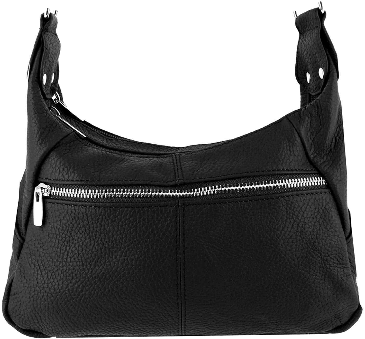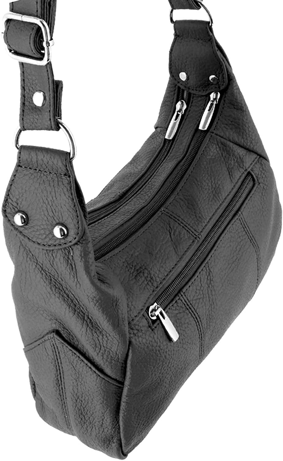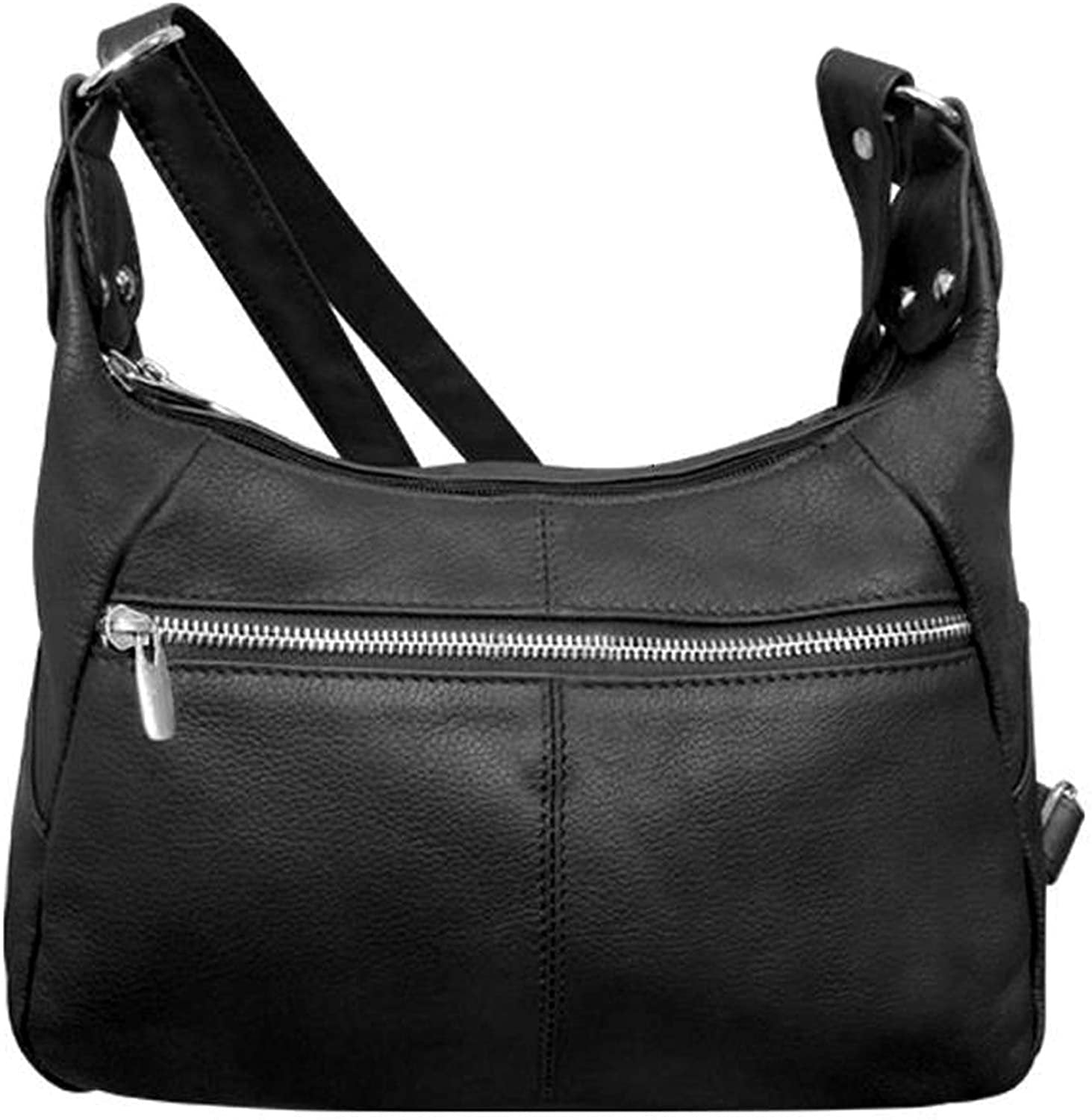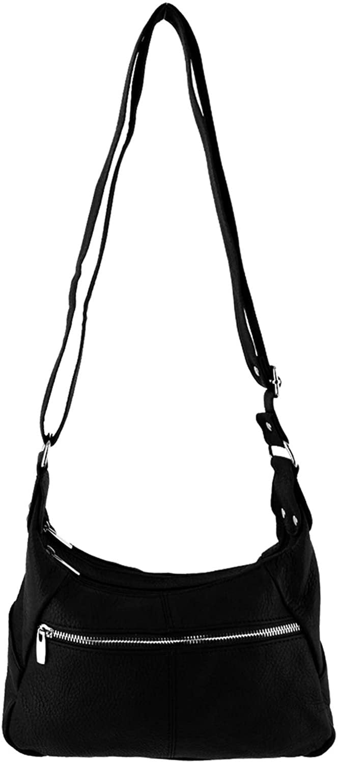 Black-2 Entry Women's Leather Medium Cross Body Purse Shoulder Ladies Handbag with Many Pockets