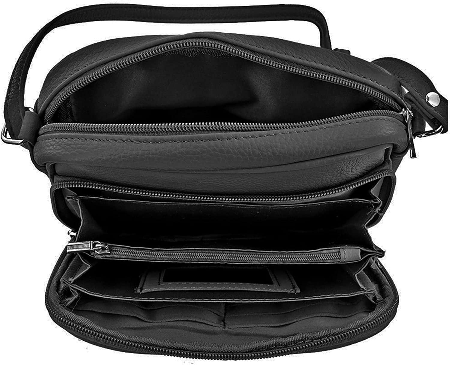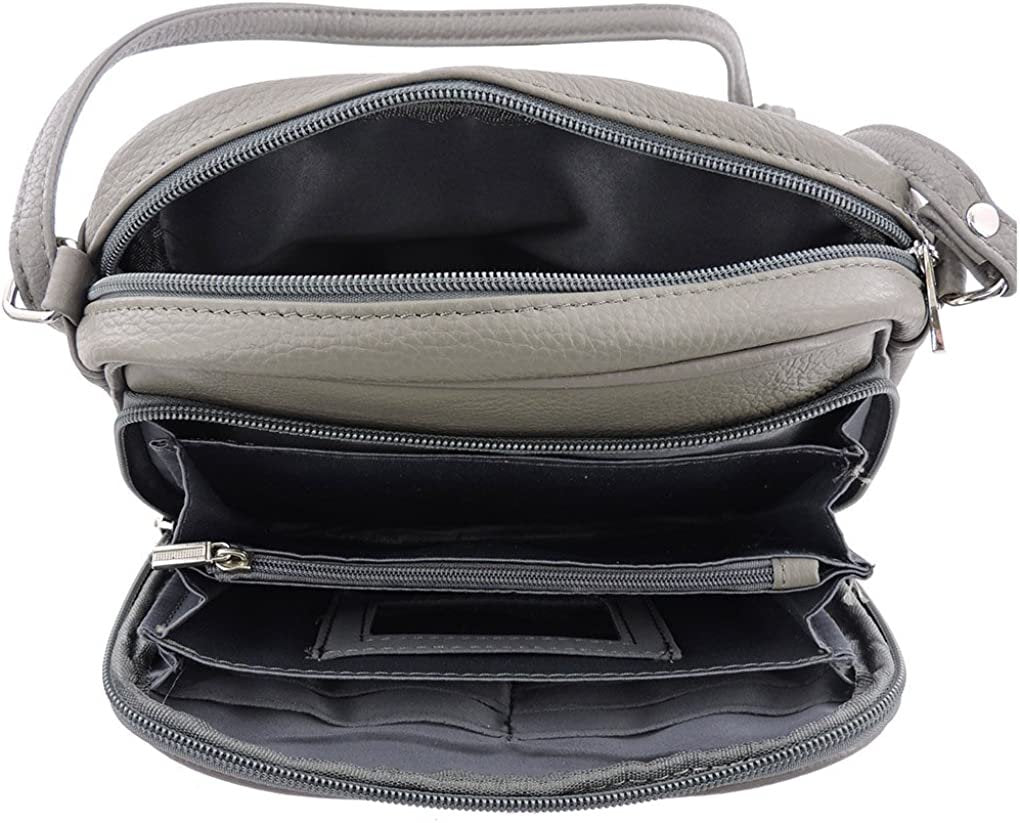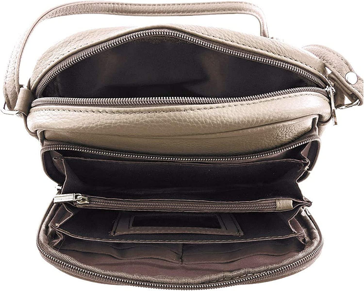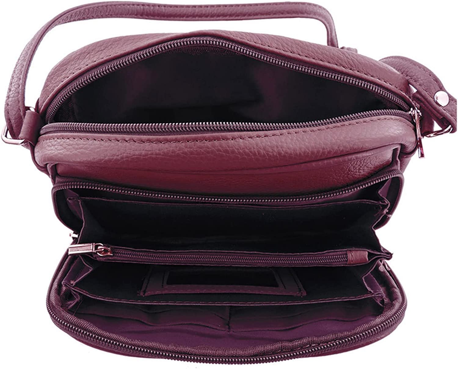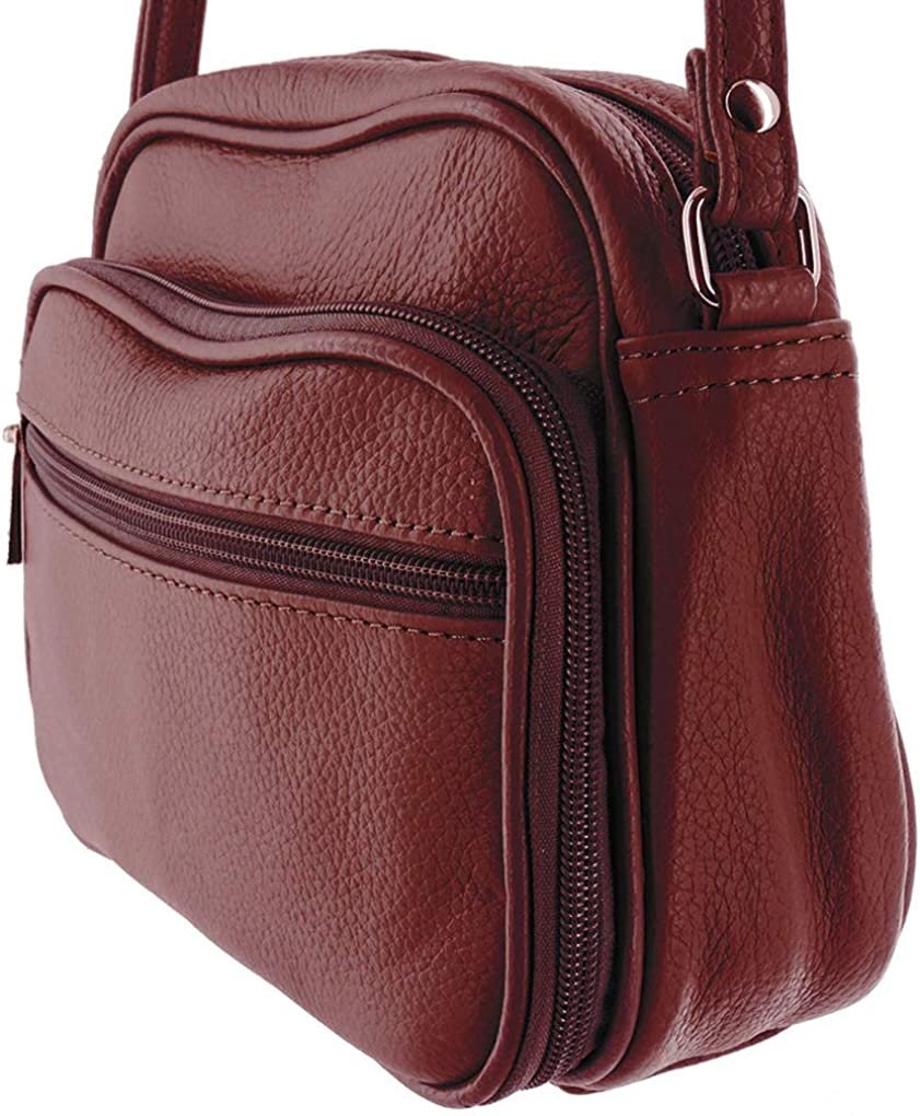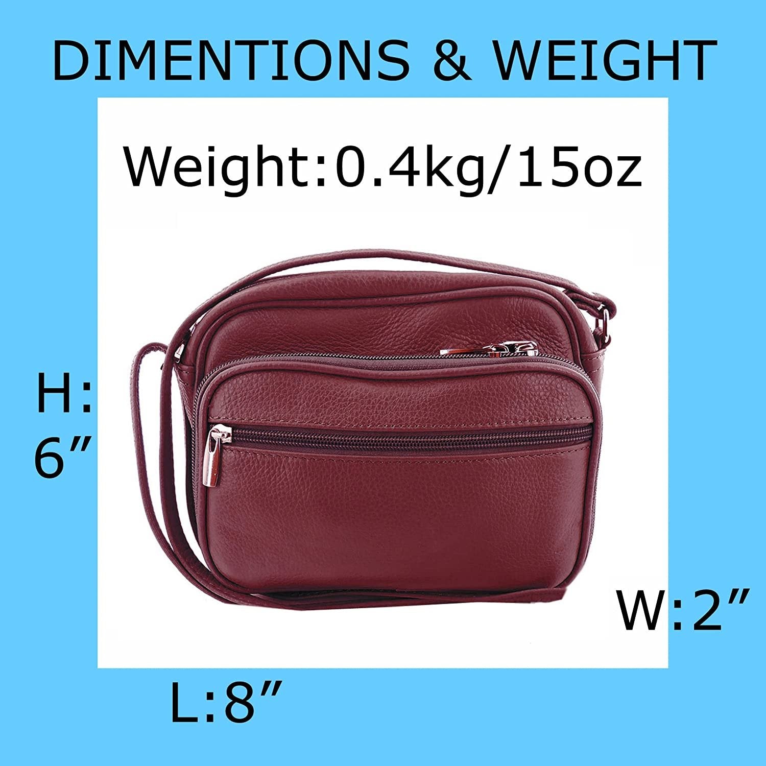 Cowhide Leather Womens Shoulder Purse Small Cross Body Organizer Bag with Many Pockets