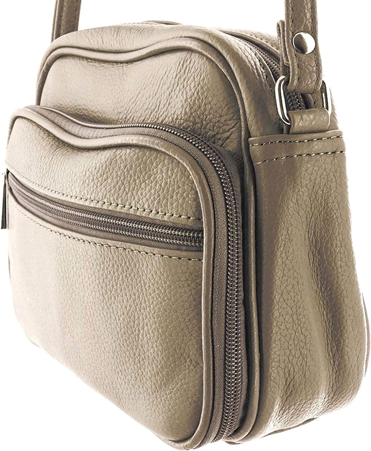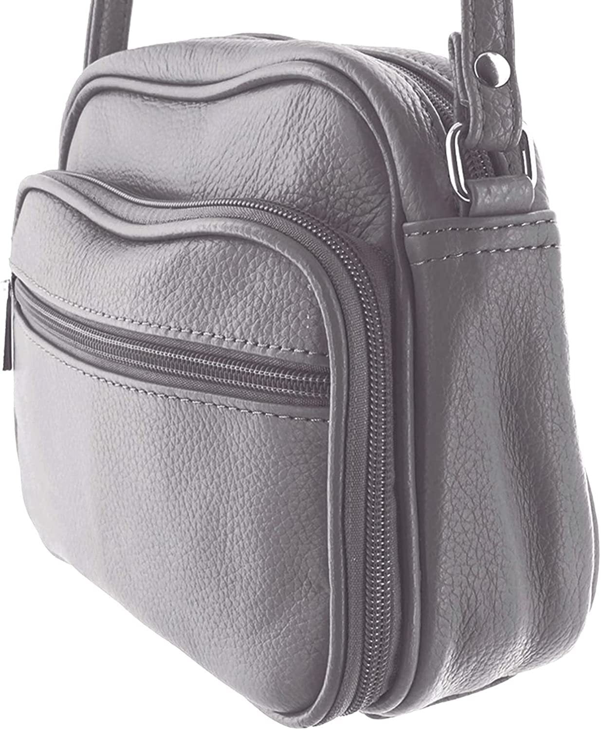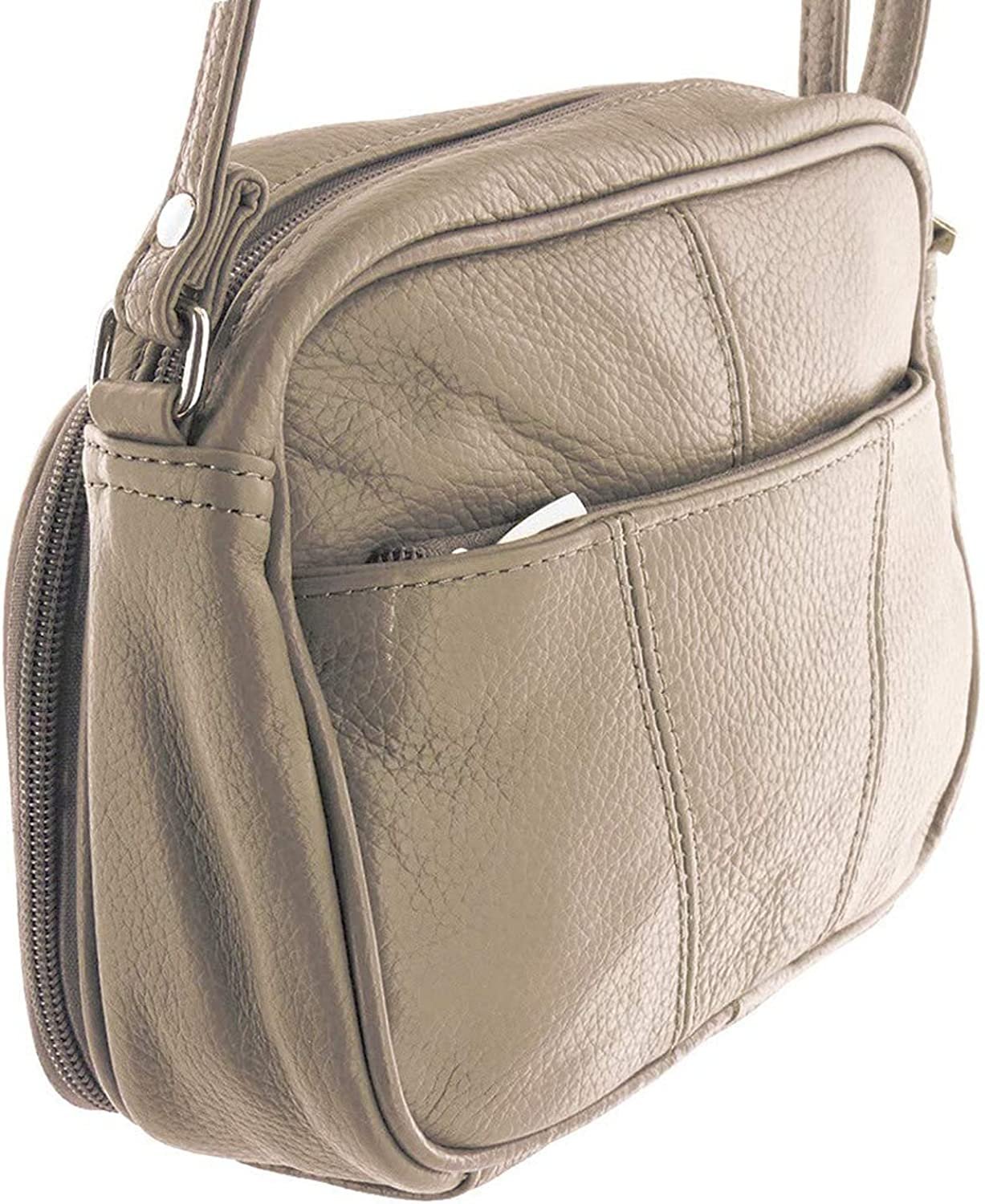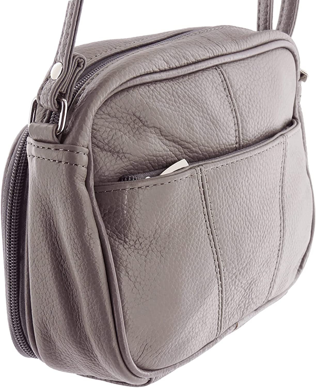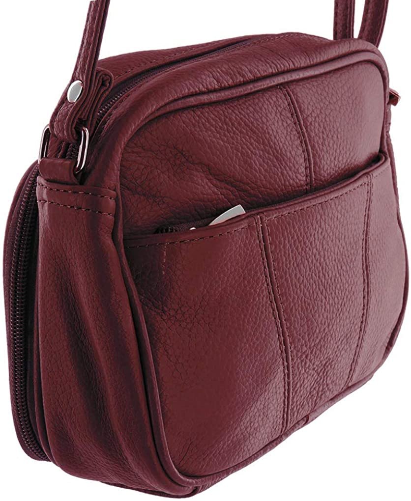 Cowhide Leather Womens Shoulder Purse Small Cross Body Organizer Bag with Many Pockets