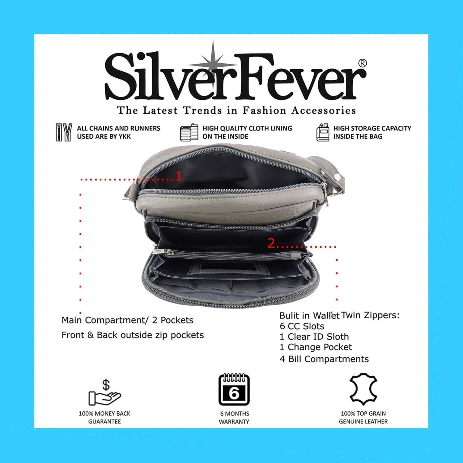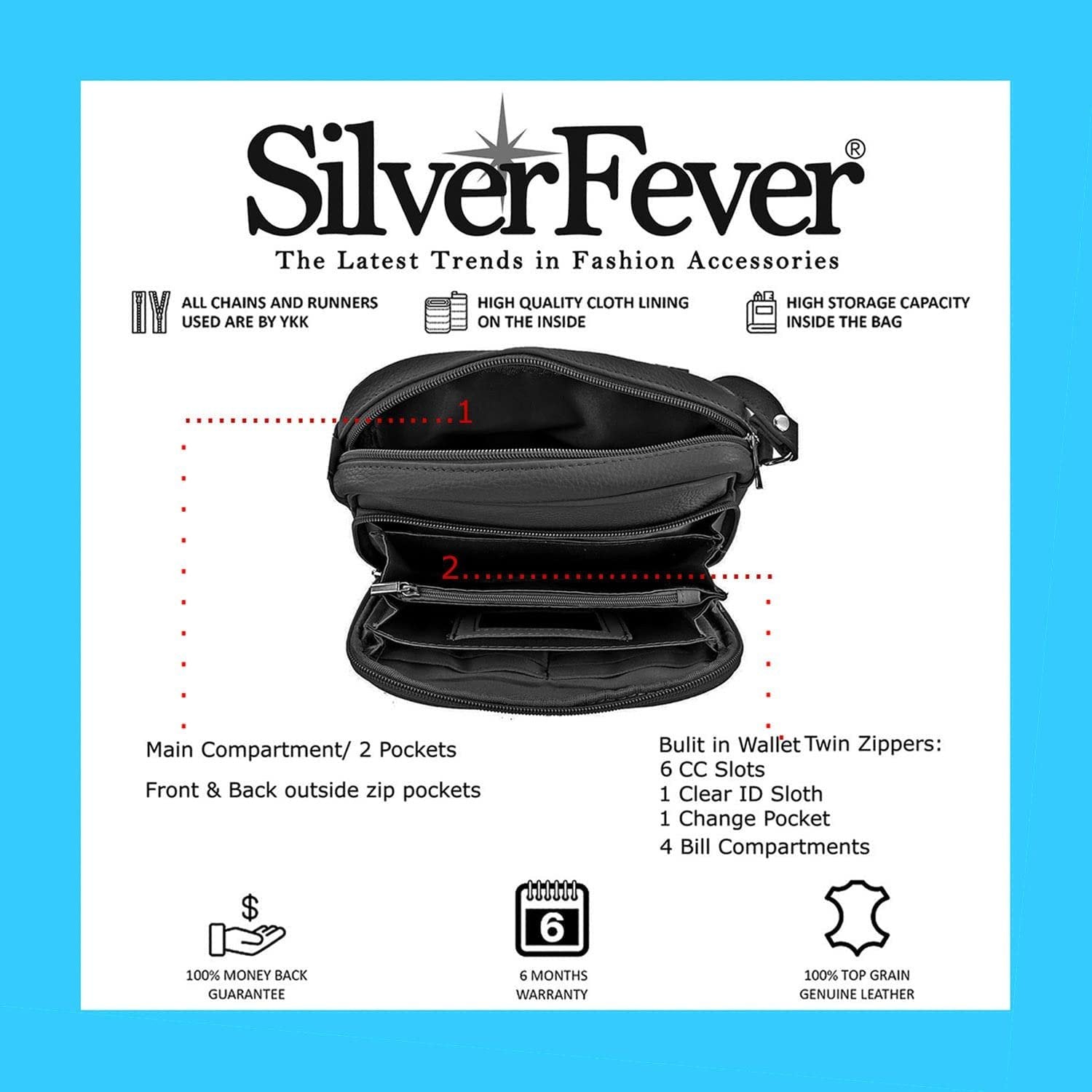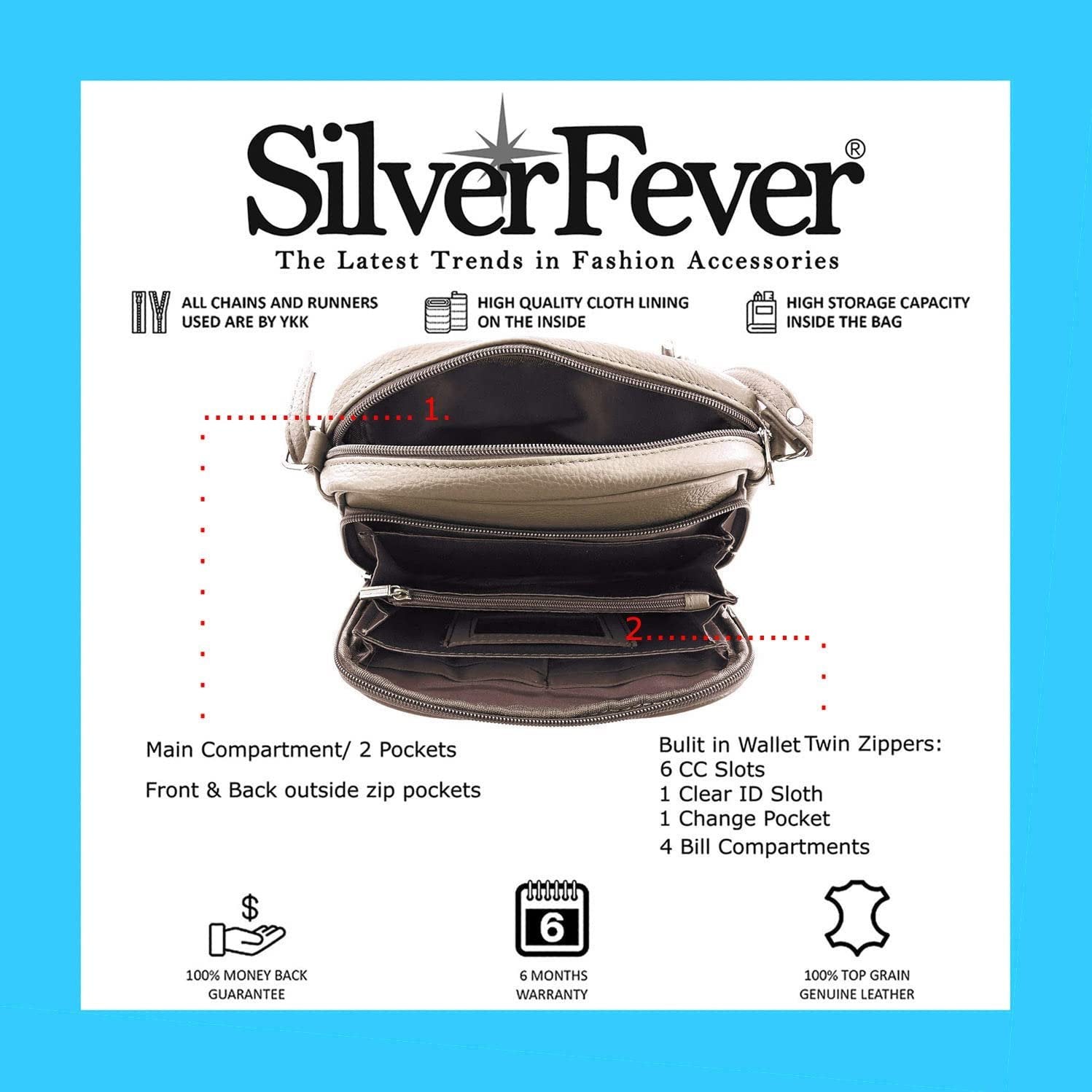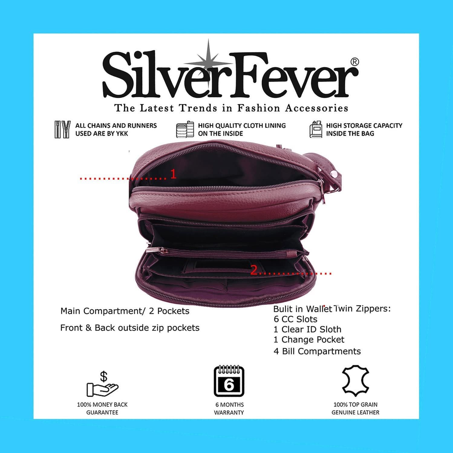 Quality you will Love! Each bag is as unique as you are, each bag is designed and made with attention to detail, quality, and practicality. - *The handbags and wallets are made with pockets and zippers exactly where you need them so all your important stuff is at your fingertips. The looks are classic and stylish to last you season after season. - *Safe and Secure: Zip closure, secured zippers, and strong water-resistant material. Genuine cowhide lasts a long time and gets softer with years. - *Makes a Great Gift! SILVERFEVER brand Makes exciting and unique gifts of an extremely affordable quality leather product that will last for a long time. - *Buy With Confidence: 1-year replacement warranty against manufacturer defects. Click add to cart to get your first SILVERFEVER while supplies last and before the sale price is gone.PACKED WITH FEATURES. This bagÕs top zippered closure, multipurpose compartments, versatile pockets, and adjustable shoulder strap will keep your belongings safe and secure. Bag for ladies with purse wallet thisn cross over crossbody lightweight travel women's real leather bag is great. Everyone loves everyday purses with multiple pockets. The other greatfeuture in this handbags for women is ultra soft cowhide. Shoulder girl handbag or a mini hobo with many outside pocket and built in wallet.ORGANIZED STYLE. Stay trendy without sacrificing personal organization. This cute small-sized handbag includesmany pockets - exterior and interior, phone pockets plus pockets for all of your everyday items.REAL LEATHER SILVERFEVER Brand Small Organizer Handbag. Leave your bulky handbag at home and enjoy this genuine leather handbag, perfect for everyday carry and travel.Great designs, with use of different kinds of henuine leather, grain cowhiode, oil faxed cowhide and crazy horse cowhide.AFFORDABLE AND DURABLE. DonÕt sacrifice quality for price. This leather handbag will last long term and wonÕt break the bank.