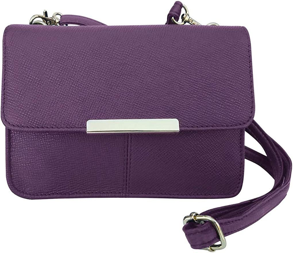 Cowhide Leather Womens Shoulder Purse Small Cross Body Organizer Bag with Many Pockets