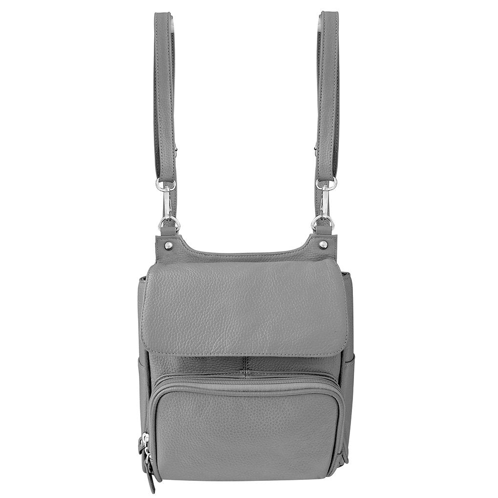 Leather Women's Backpack w Flip Rain Cover & Top Handle SilverFever