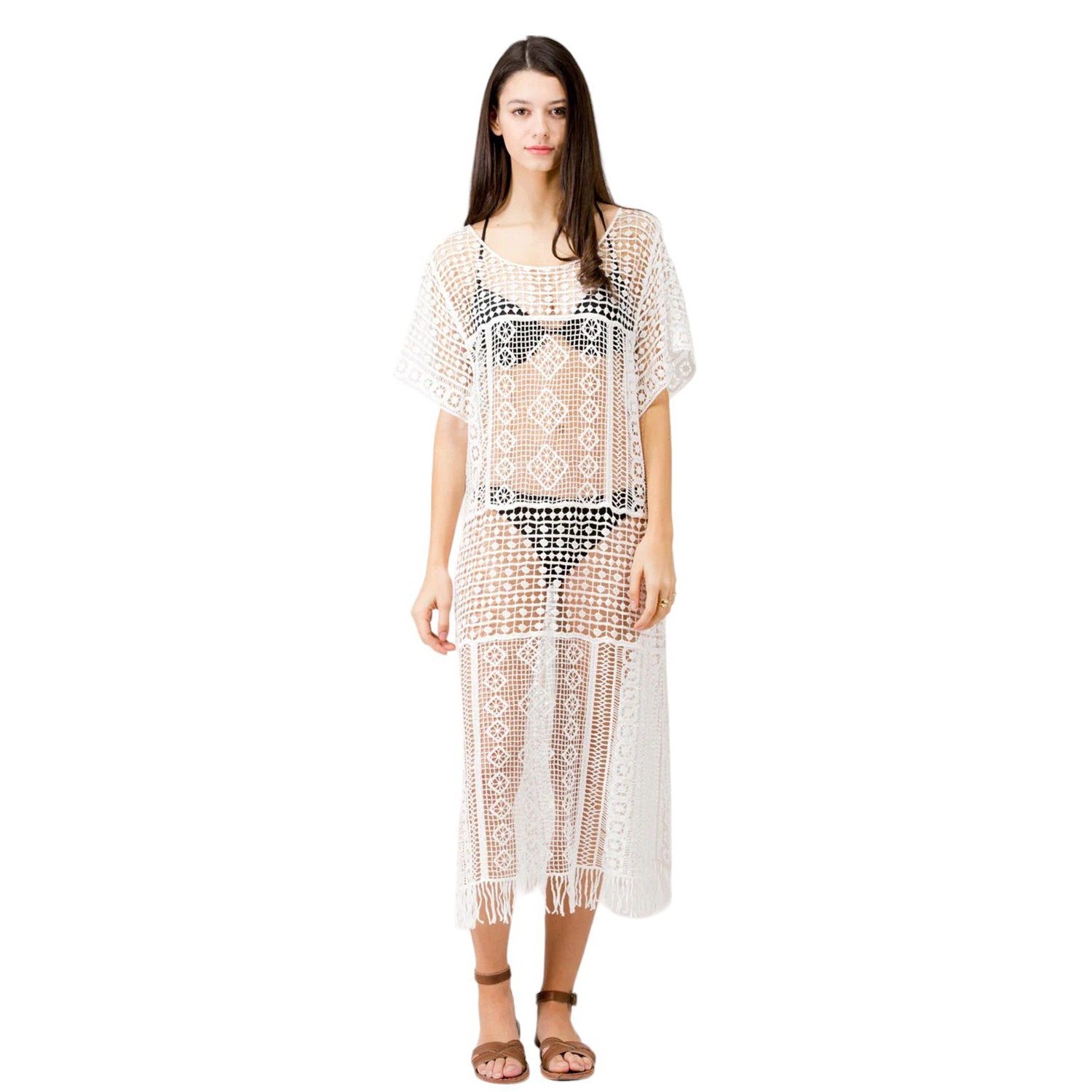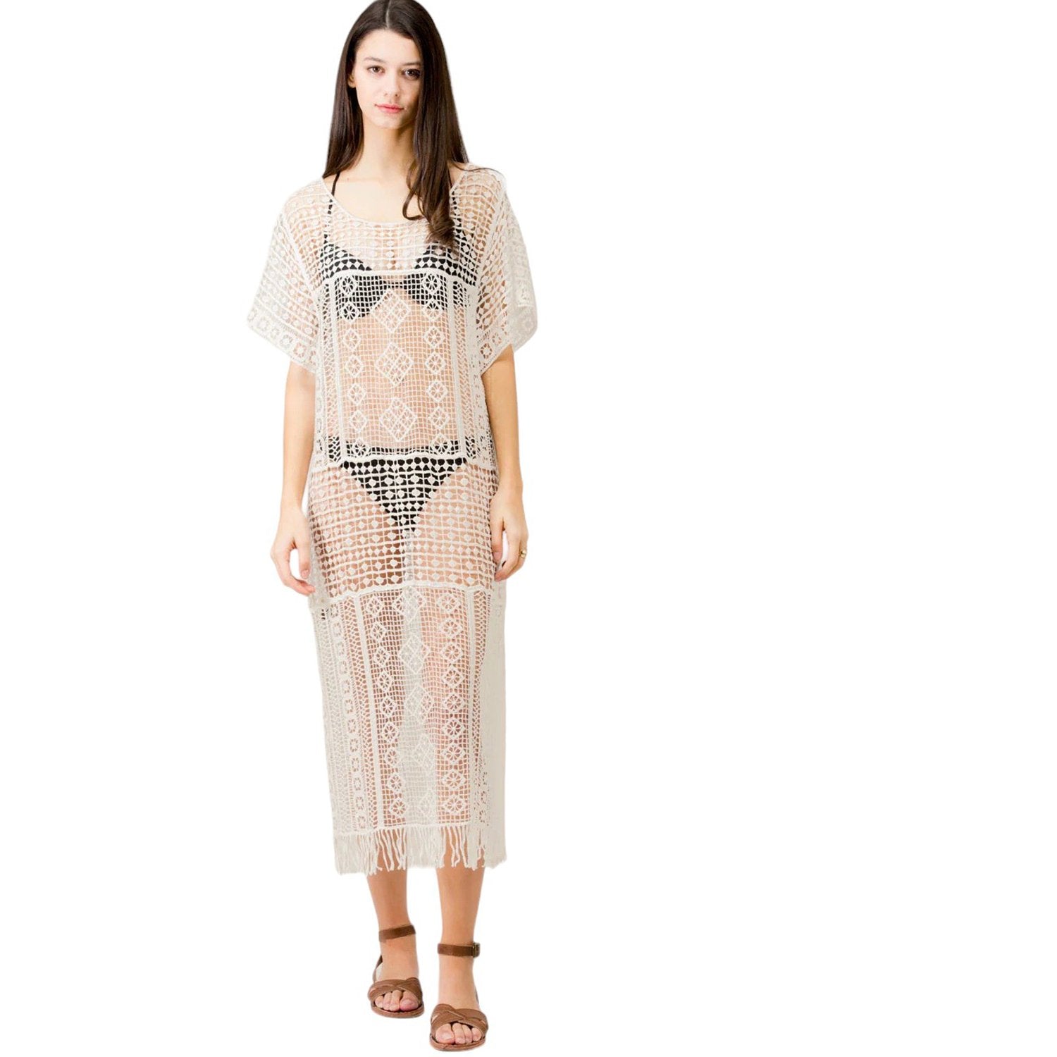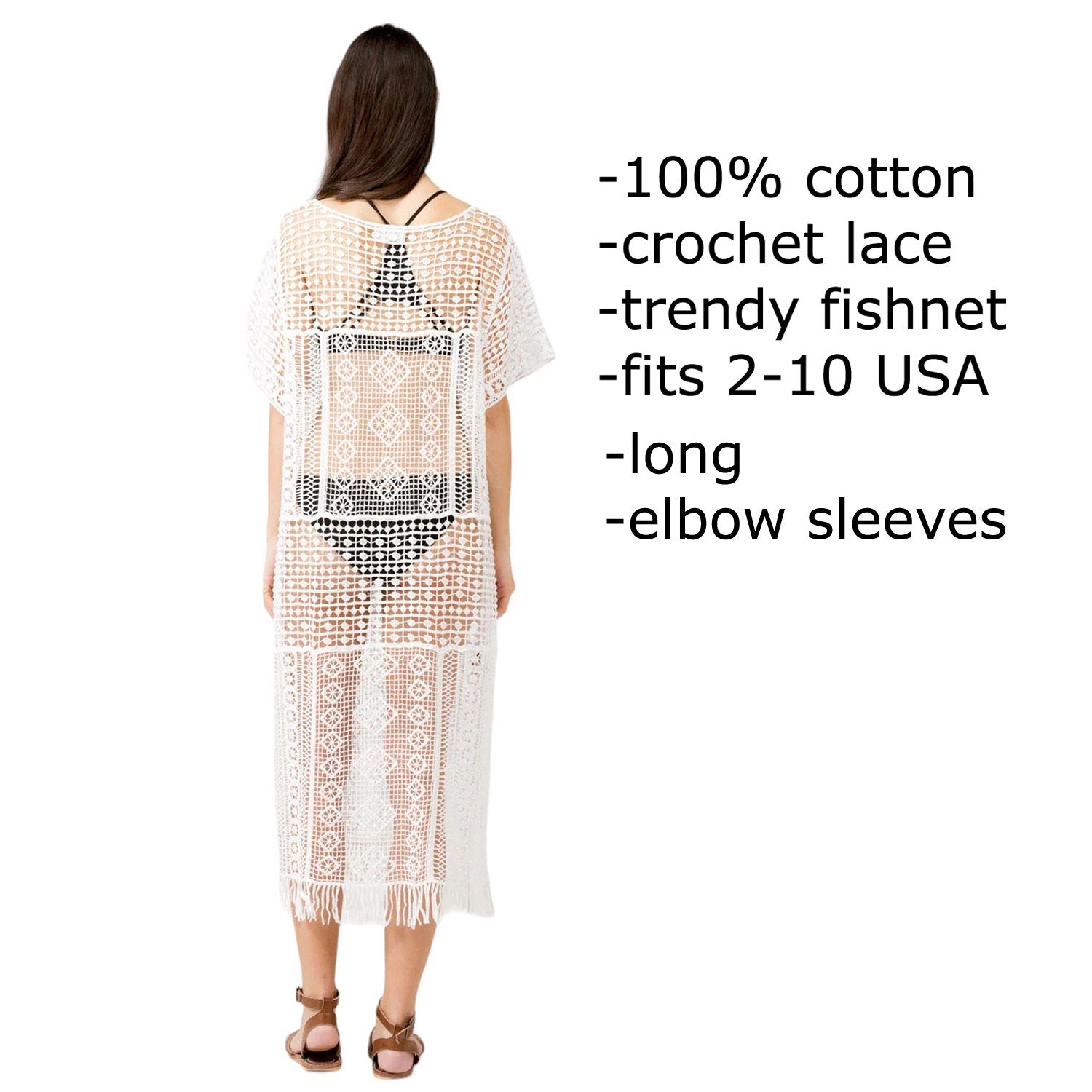 Summer Beach or Pool Cover Up, the Long Long Crochet w Tassel Kimono Elbow Sleeve is Great to take it with you for travel or vacation.