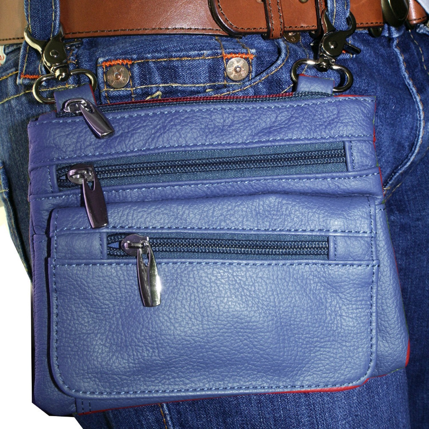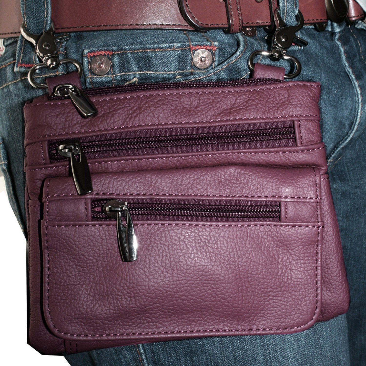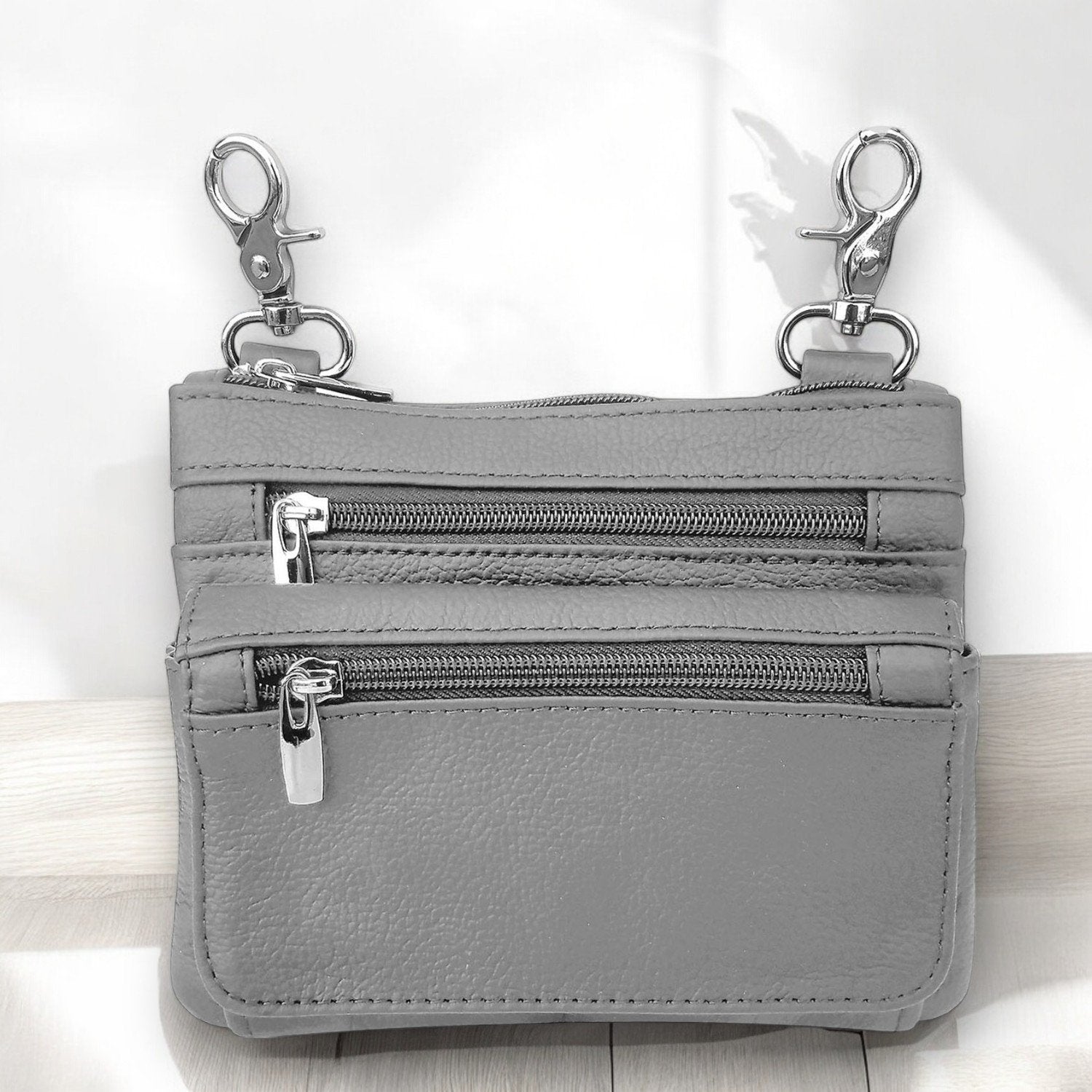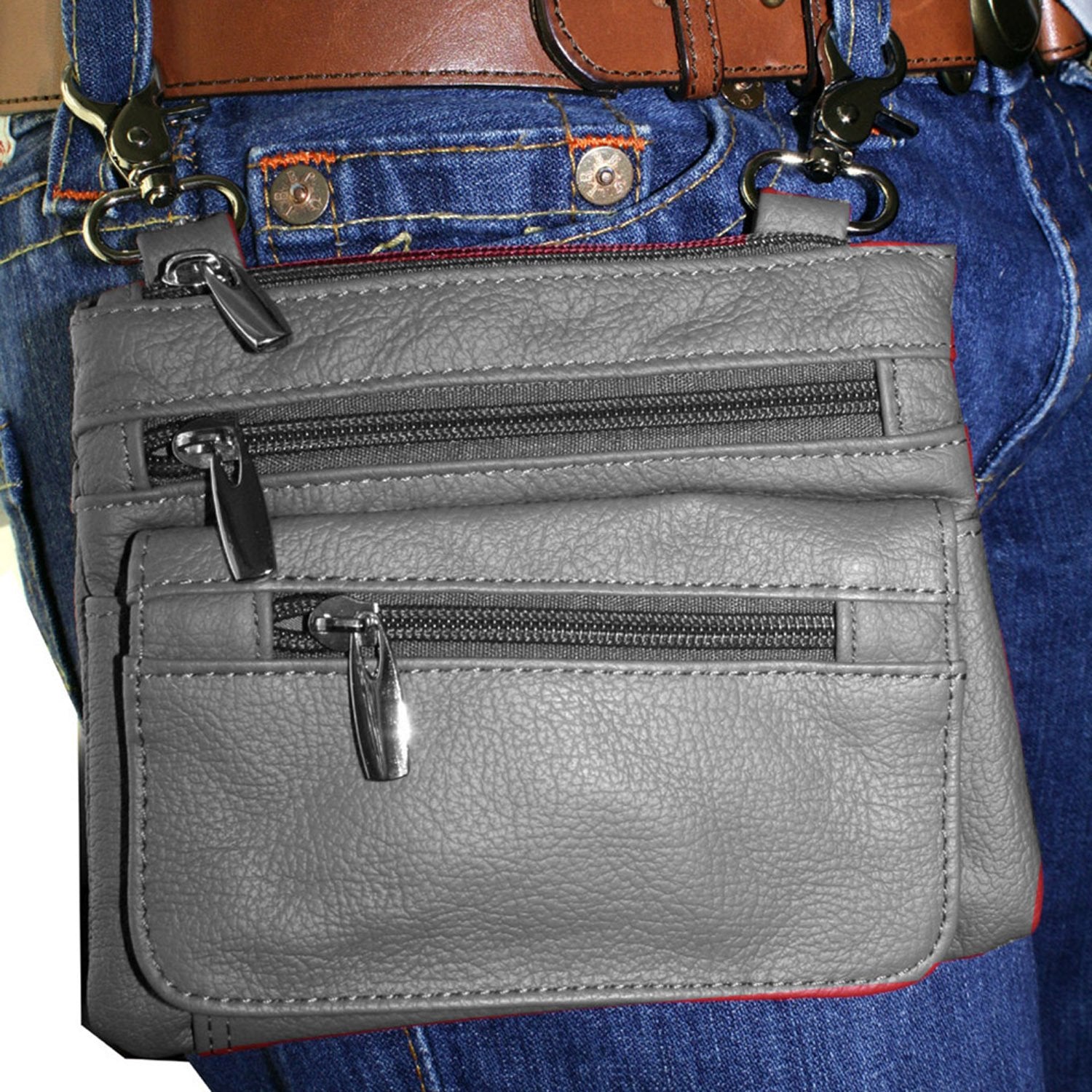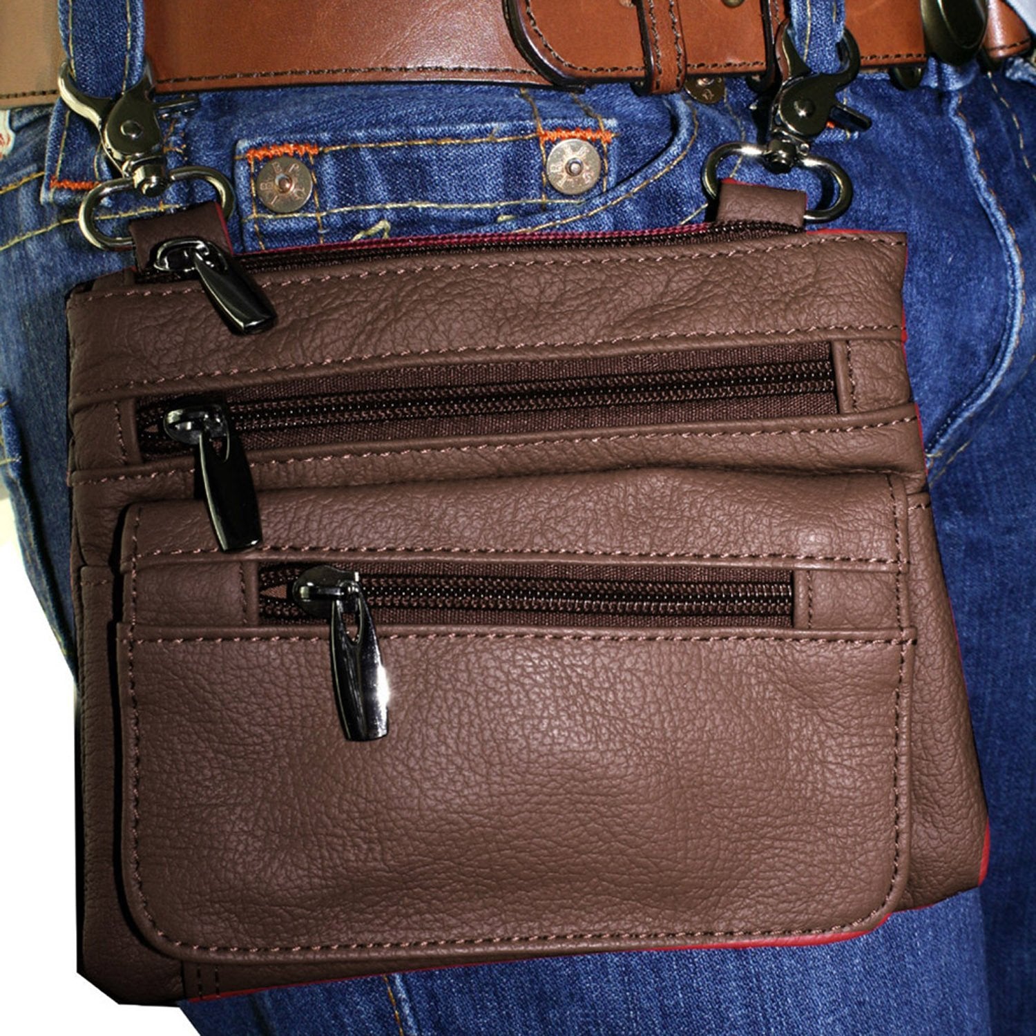 Compact Size: Measures 7½" x 6", perfect for keeping your essentials within reach without the bulk.Durable Cowhide Leather: Made from high-quality cowhide leather for lasting durability and style.Adjustable Shoulder Strap: Versatile strap connects to belt loop clips, adjustable for a comfortable fit.Quick Access Overflap: Front side features an overflap for easy access to frequently used items.Two Exterior Zipper Pockets: Additional storage for small items like cards, cash, or keys.Share