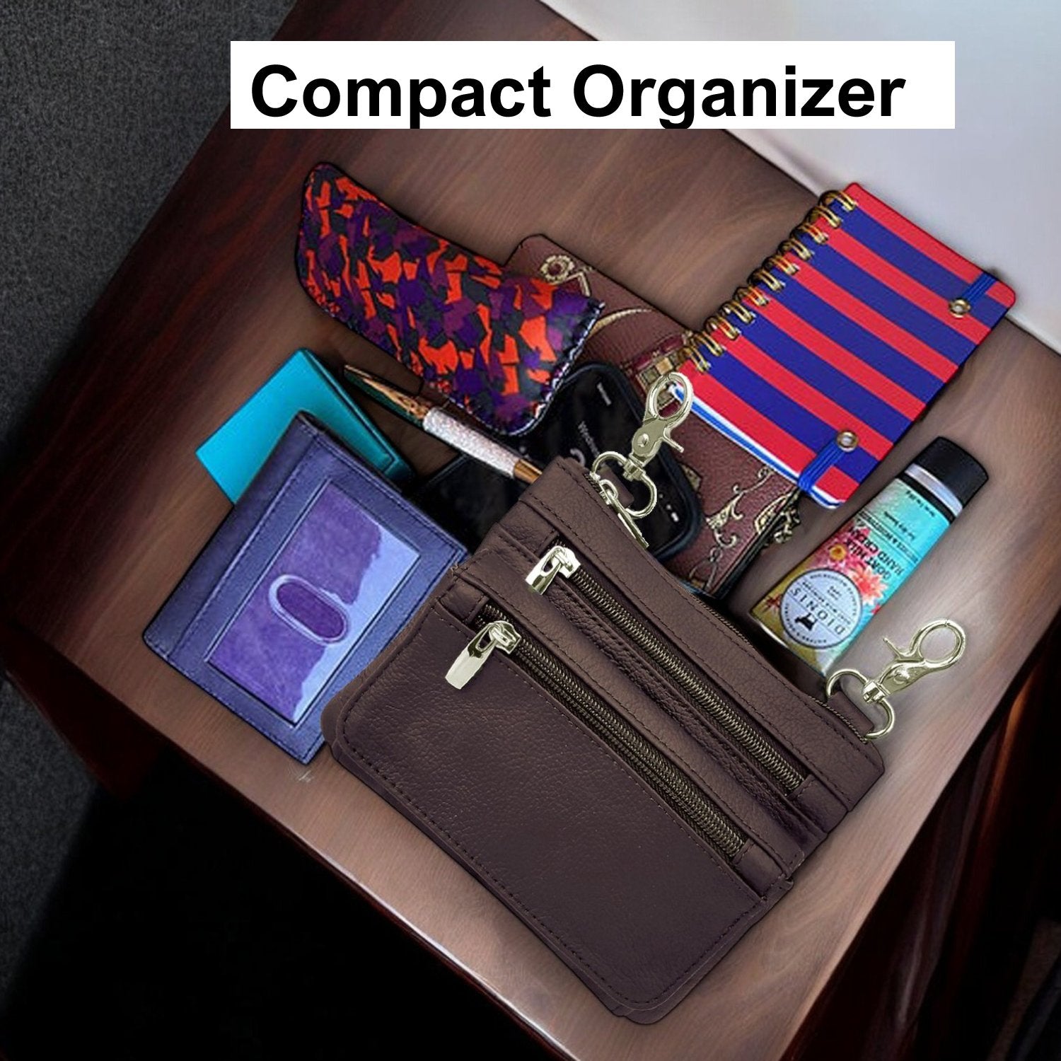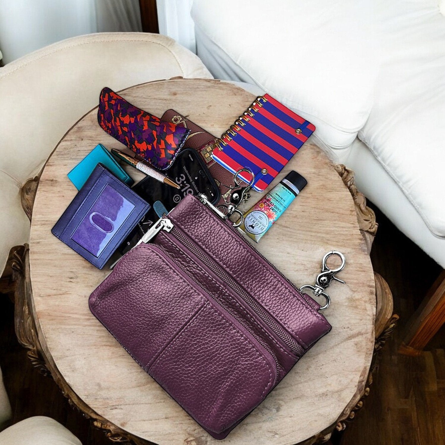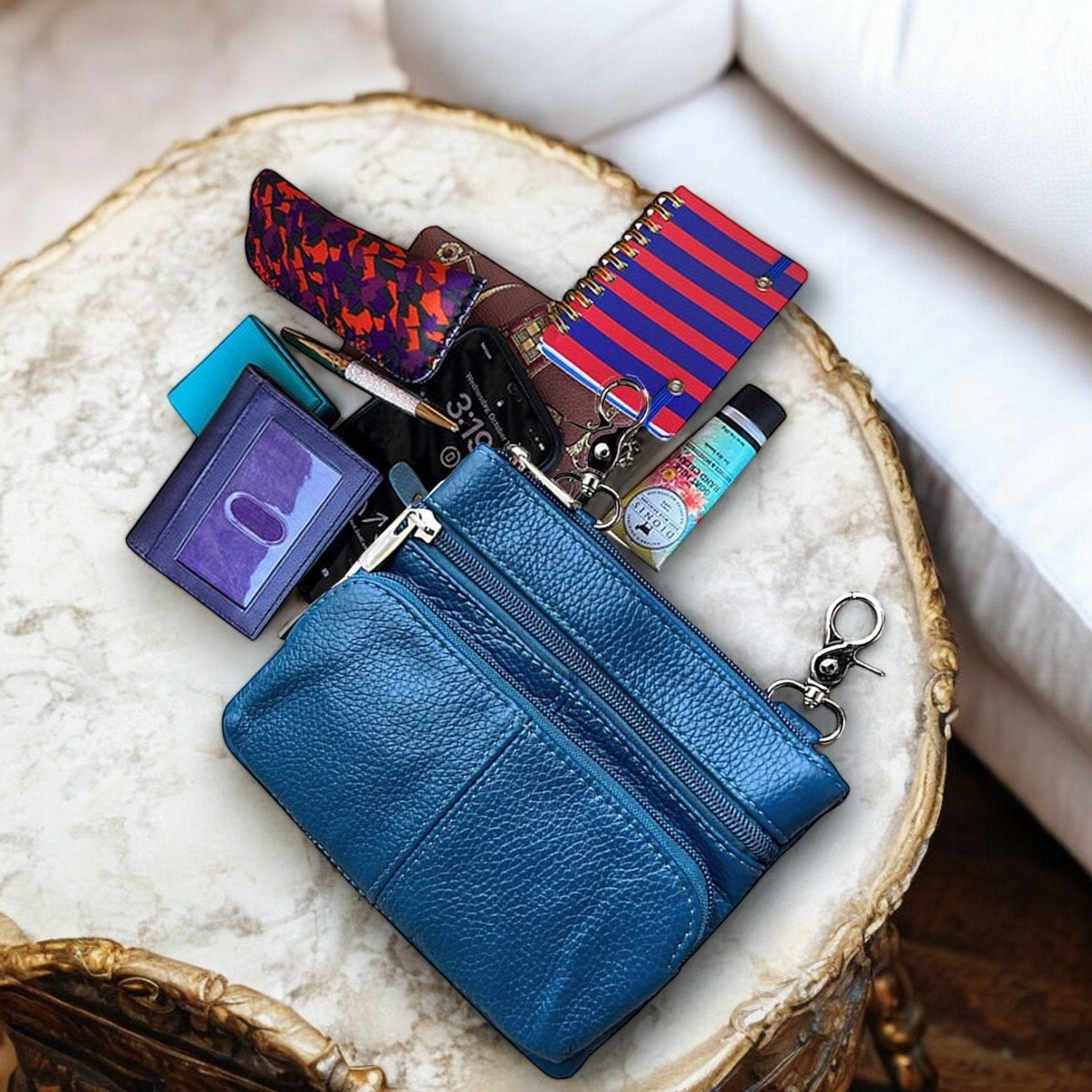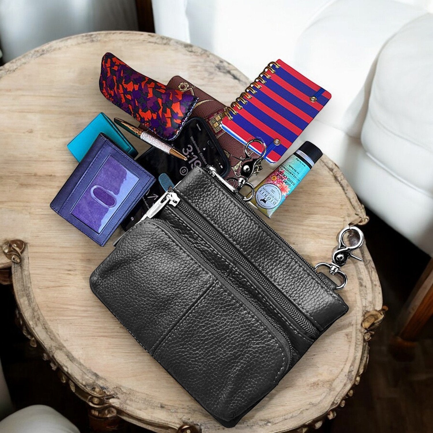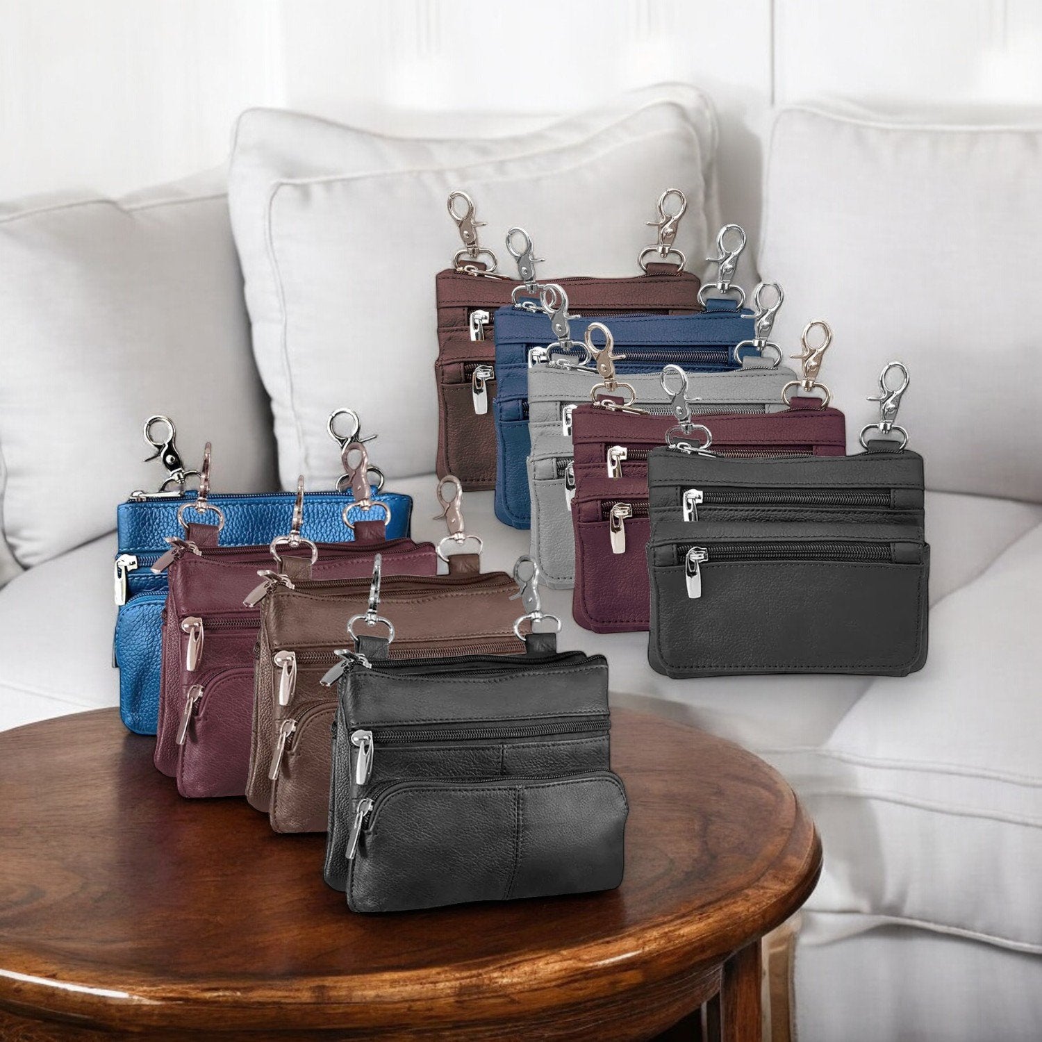 Compact Size: Measures 7½" x 6", perfect for keeping your essentials within reach without the bulk.Durable Cowhide Leather: Made from high-quality cowhide leather for lasting durability and style.Adjustable Shoulder Strap: Versatile strap connects to belt loop clips, adjustable for a comfortable fit.Quick Access Overflap: Front side features an overflap for easy access to frequently used items.Two Exterior Zipper Pockets: Additional storage for small items like cards, cash, or keys.Share