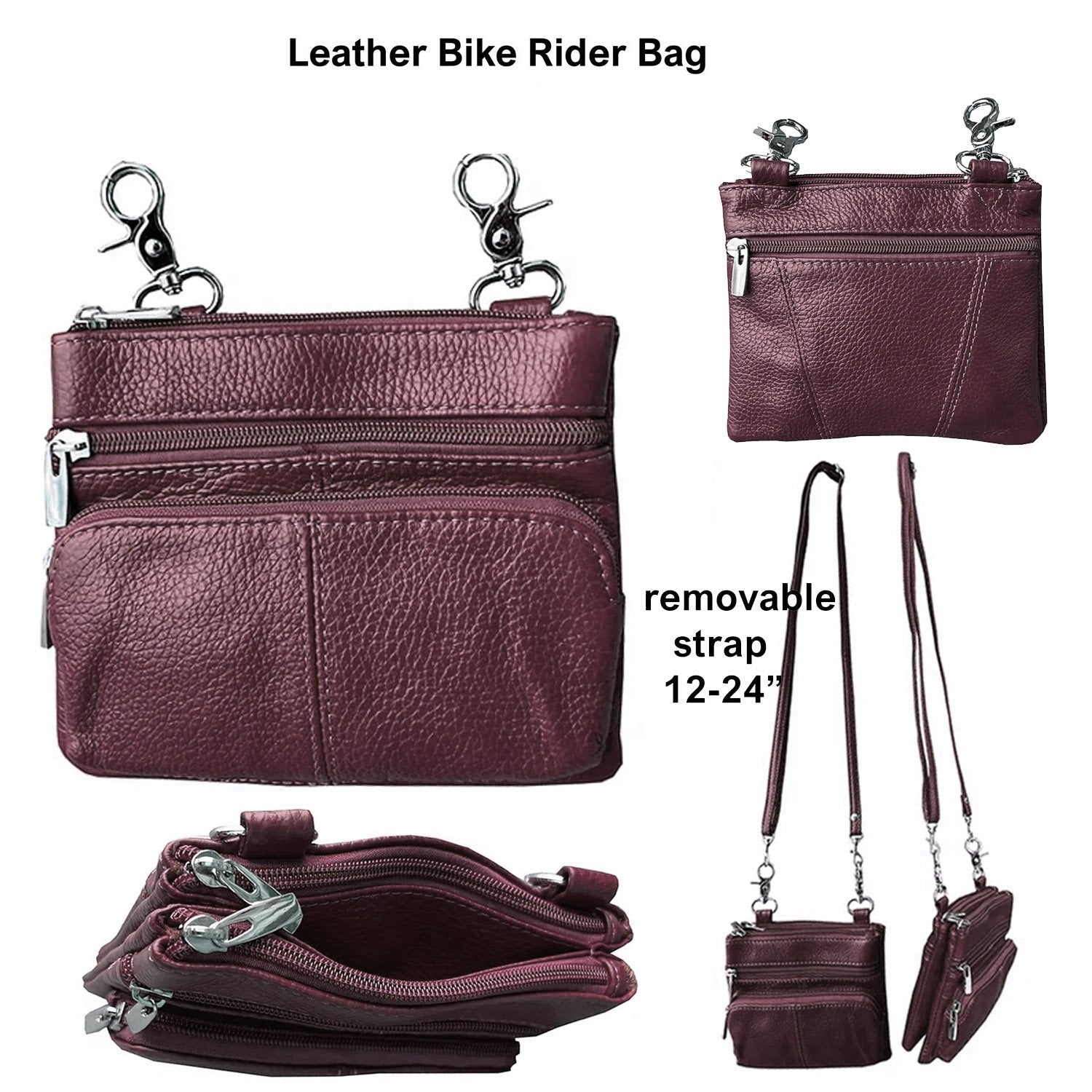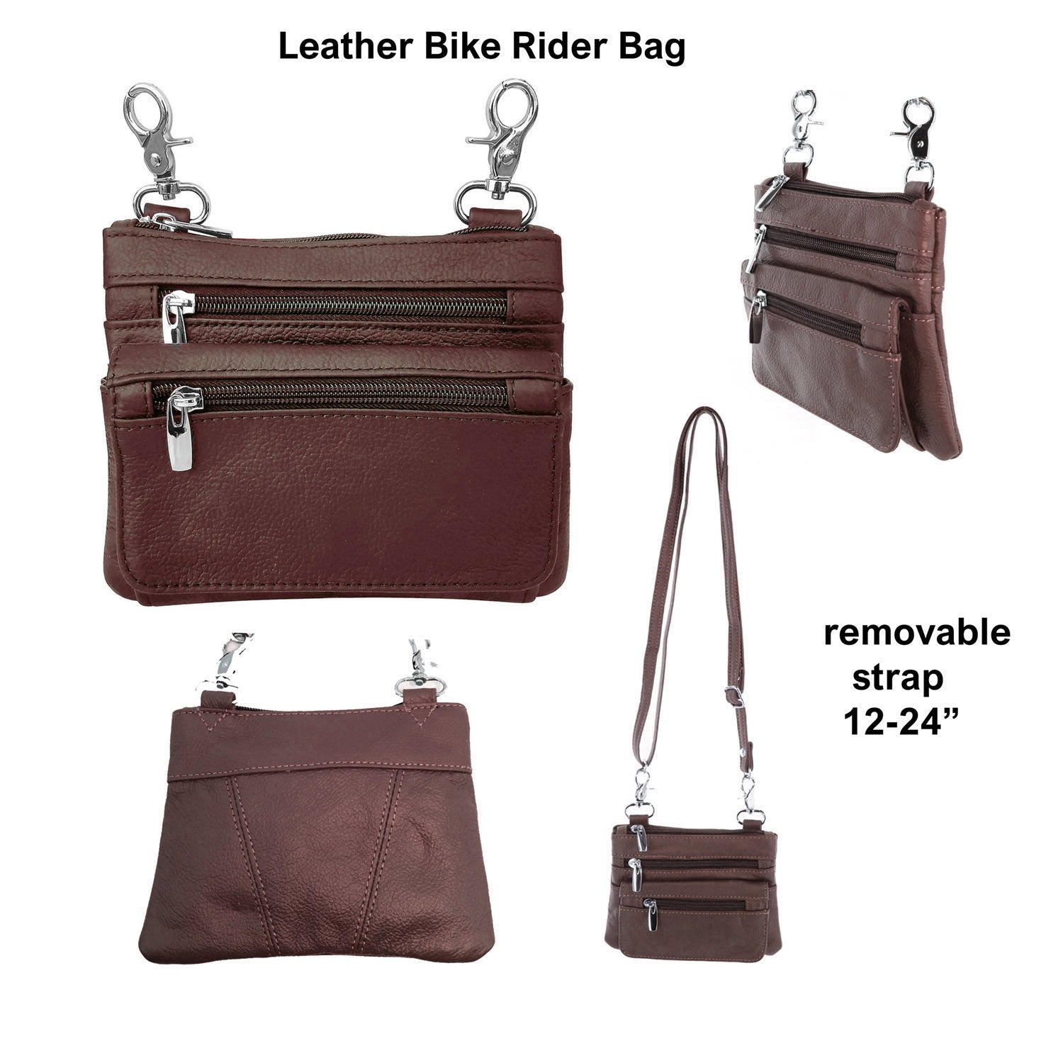 The SILVERFEVER Leather Bike Rider Bag is a sleek and practical cross-body, shoulder, hip, or belt bag made from genuine top-grain cowhide leather. Featuring multiple zippered pockets, this compact fanny pack keeps your phone, cash, cards, and ID secure while you ride. It’s lined with a cotton-like fabric for added durability. The fully adjustable leather strap offers a shoulder drop of 12-24 inches and is removable, while a strong clip allows you to attach the bag to your trouser belt loops. Ideal for travel, horseback riding, or bike rides, it provides convenient storage for your essentials, freeing you from carrying a bulky wallet. Backed by a 90-day warranty for peace of mind.