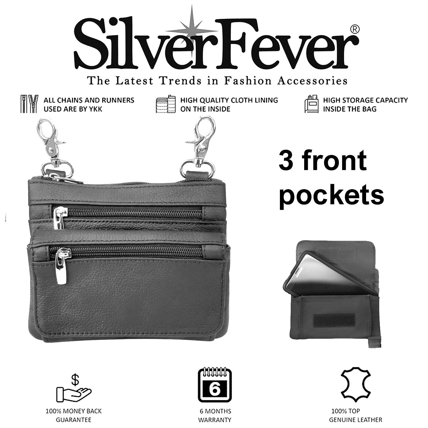 SILVERFEVER Leather Bike Rider Accordion Bag Cross Body Belt Phone Pack Pouch