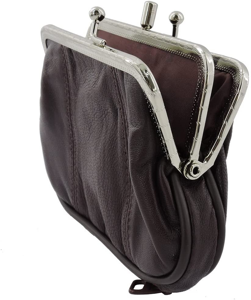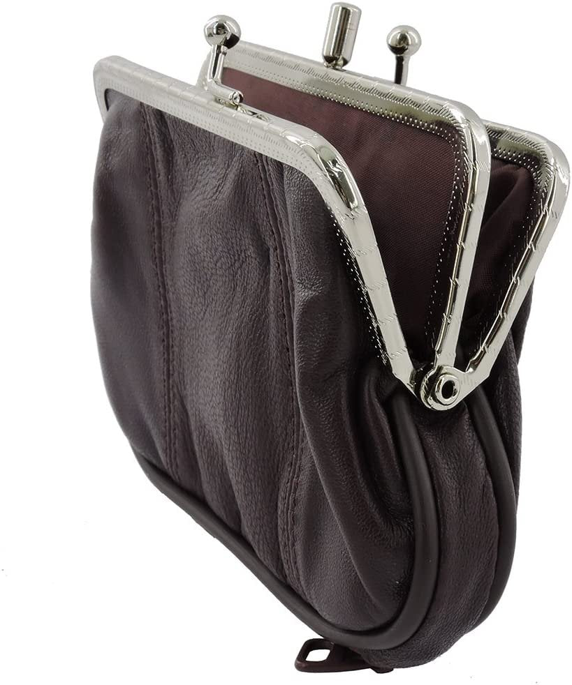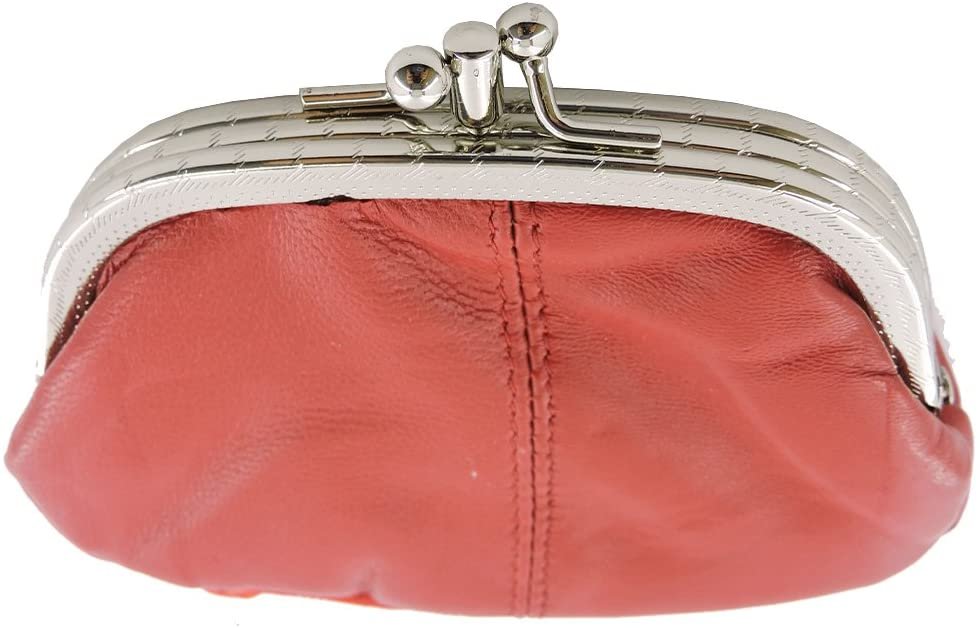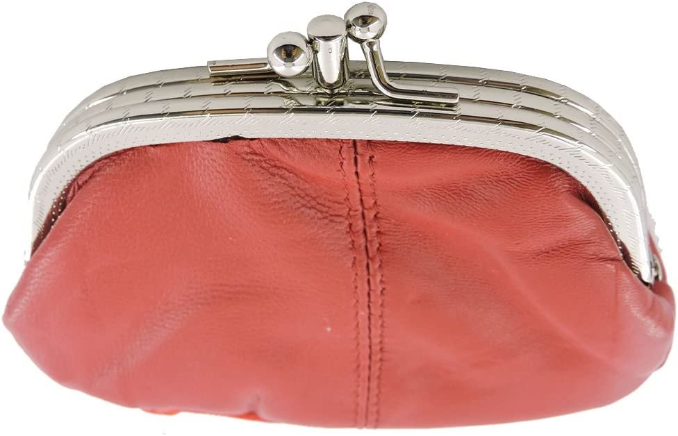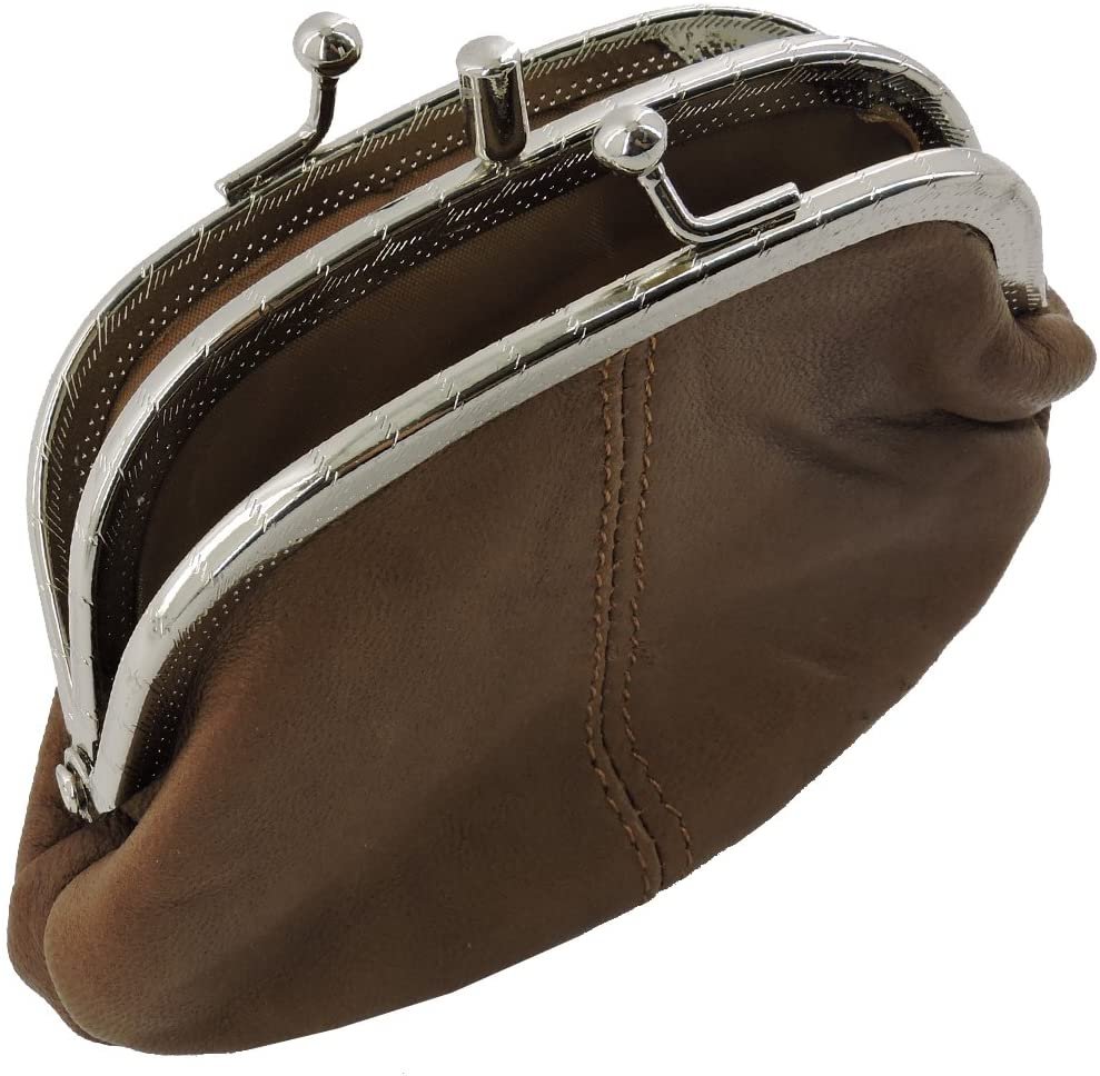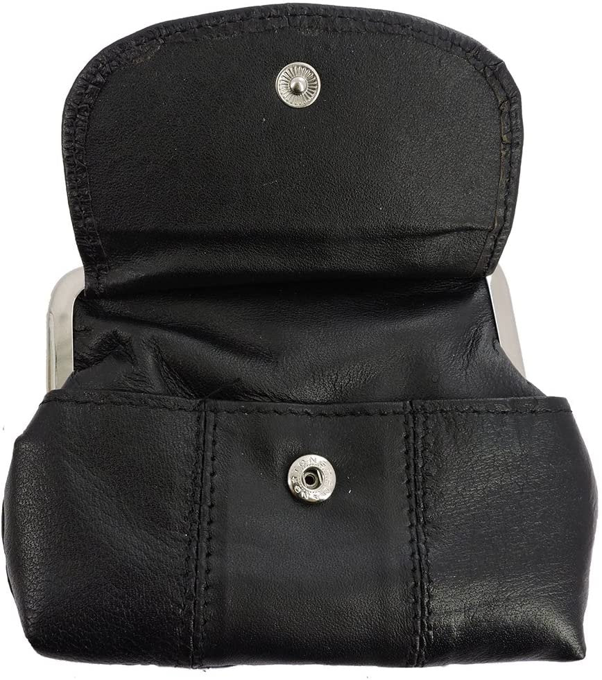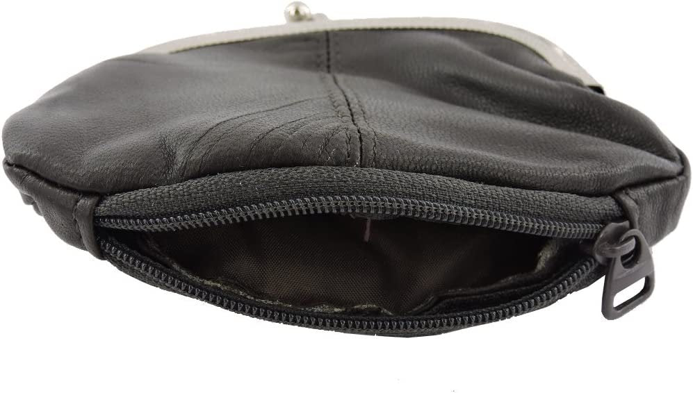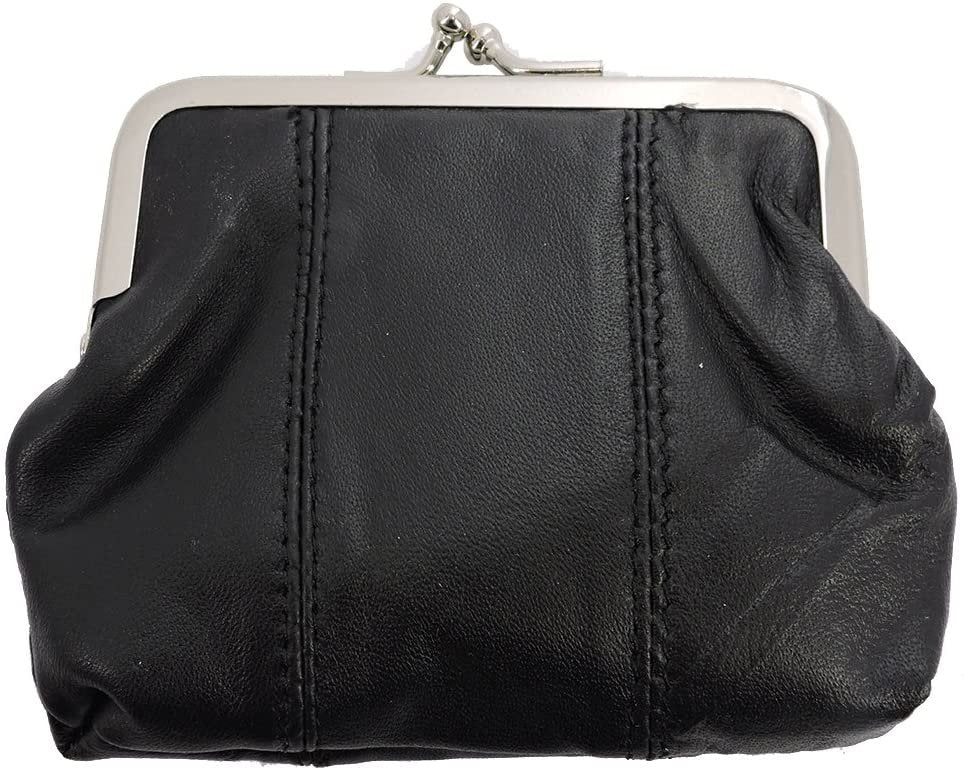 SILVERFEVER Leather Coin Purse with Kisslock Closure - Handcrafted Genuine Lambskin (3 Entry, Black)