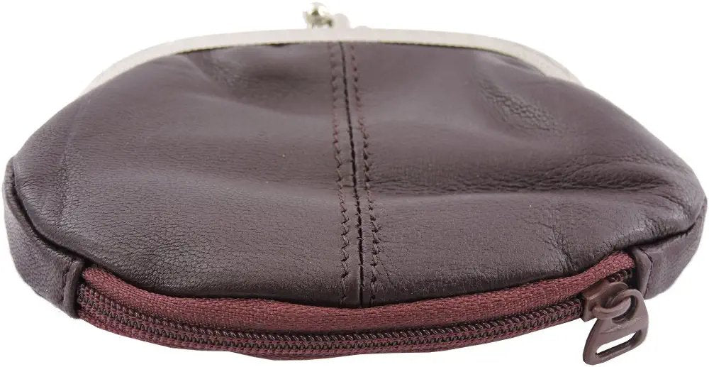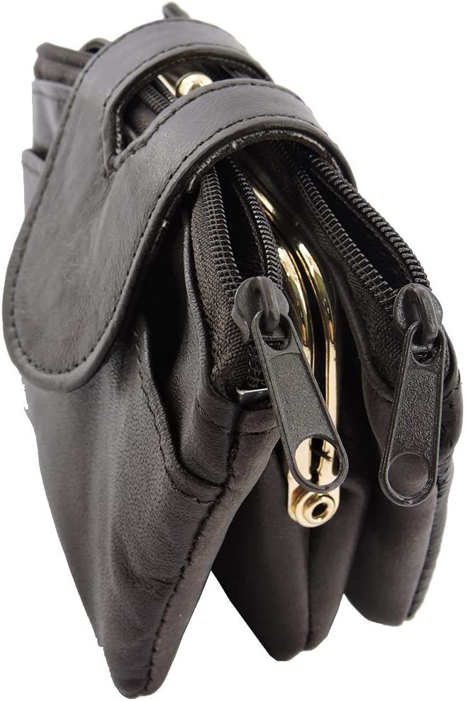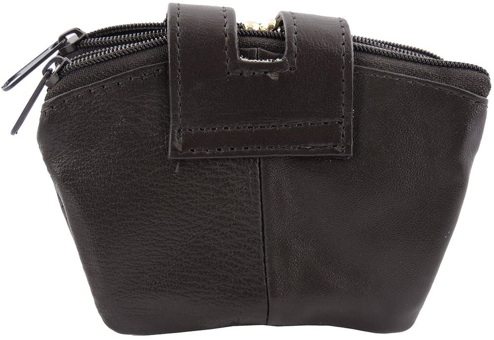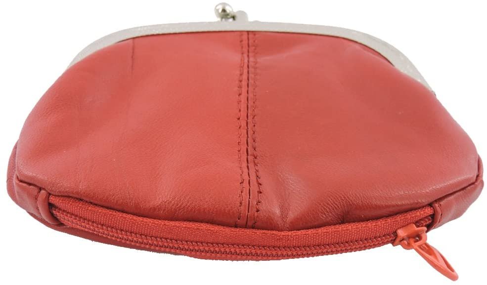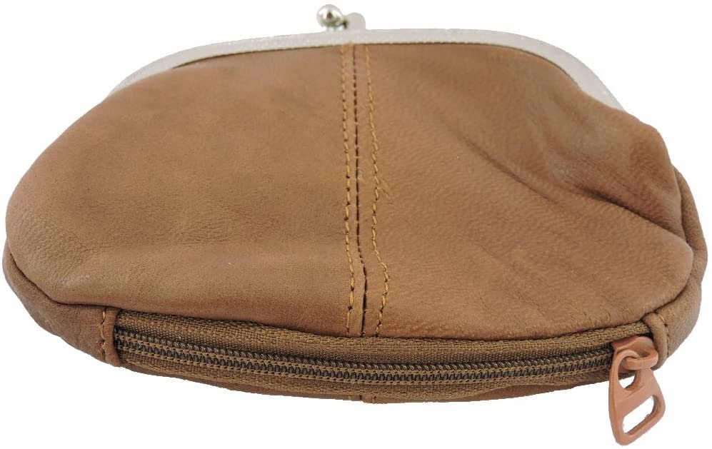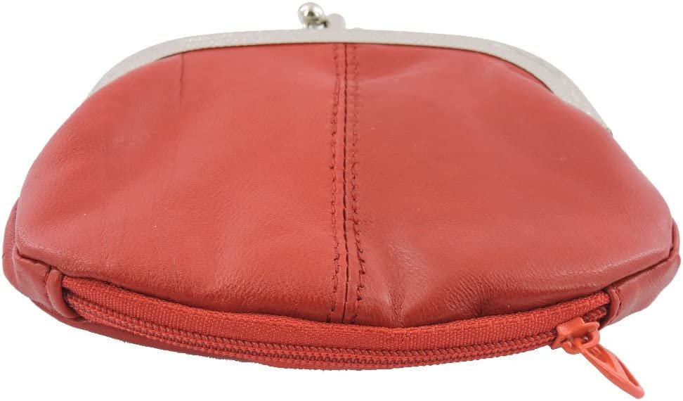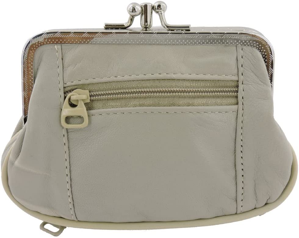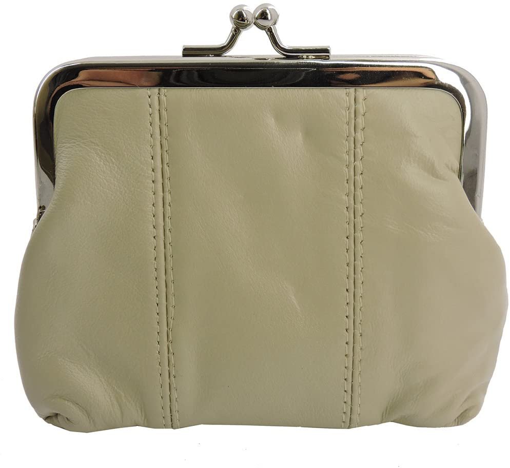 SILVERFEVER Leather Coin Purse with Kisslock Closure - Handcrafted Genuine Lambskin (3 Entry, Black)
