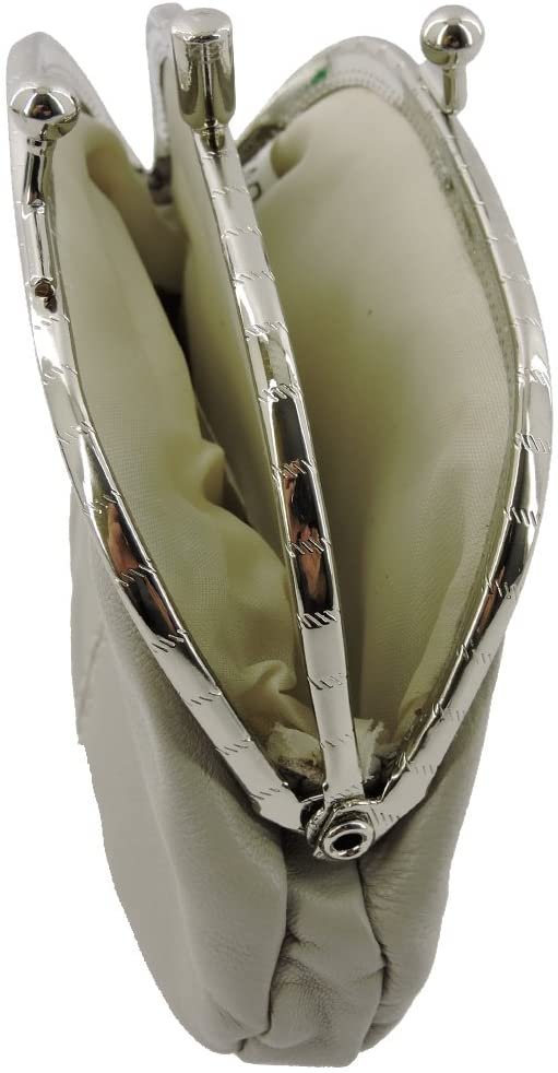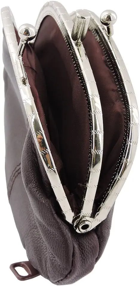 STYLE: 2 ENTRY 1 PCK: 4.5"*4" Double-snap compartment with silver metal frame. One more secret zippered pocket at the bottom for valuables.