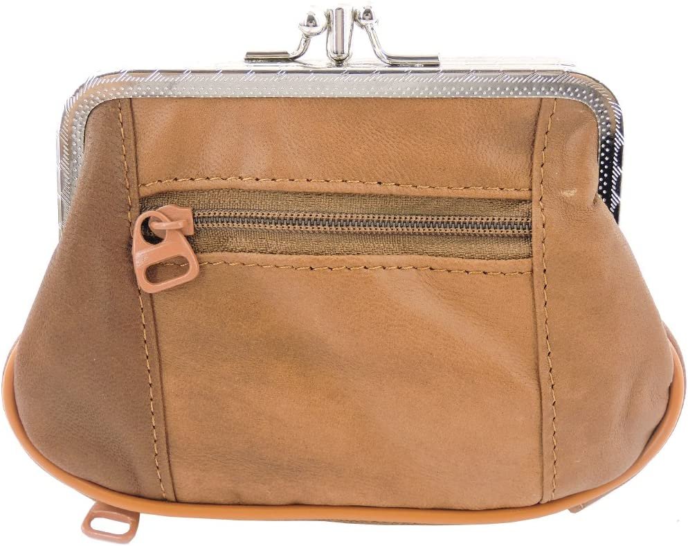 STYLE: 2 ENTRY 2 POCKETS: 5.5*3.5. Double snap compartment with metal frame. One more secret zippered pocket at the bottomfor valuables. One zippered side pocket.