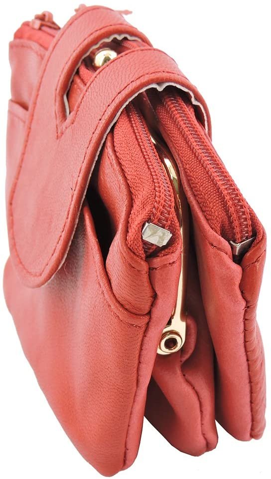 STYLE: 3 ENTRY 3.5"*3". 3 Top entry, 4 pockets secure flap over accodion type opening. Convenient coin purse with four pockets. A stylish flap w/ snap to further secure the purse. Genuine Leather.