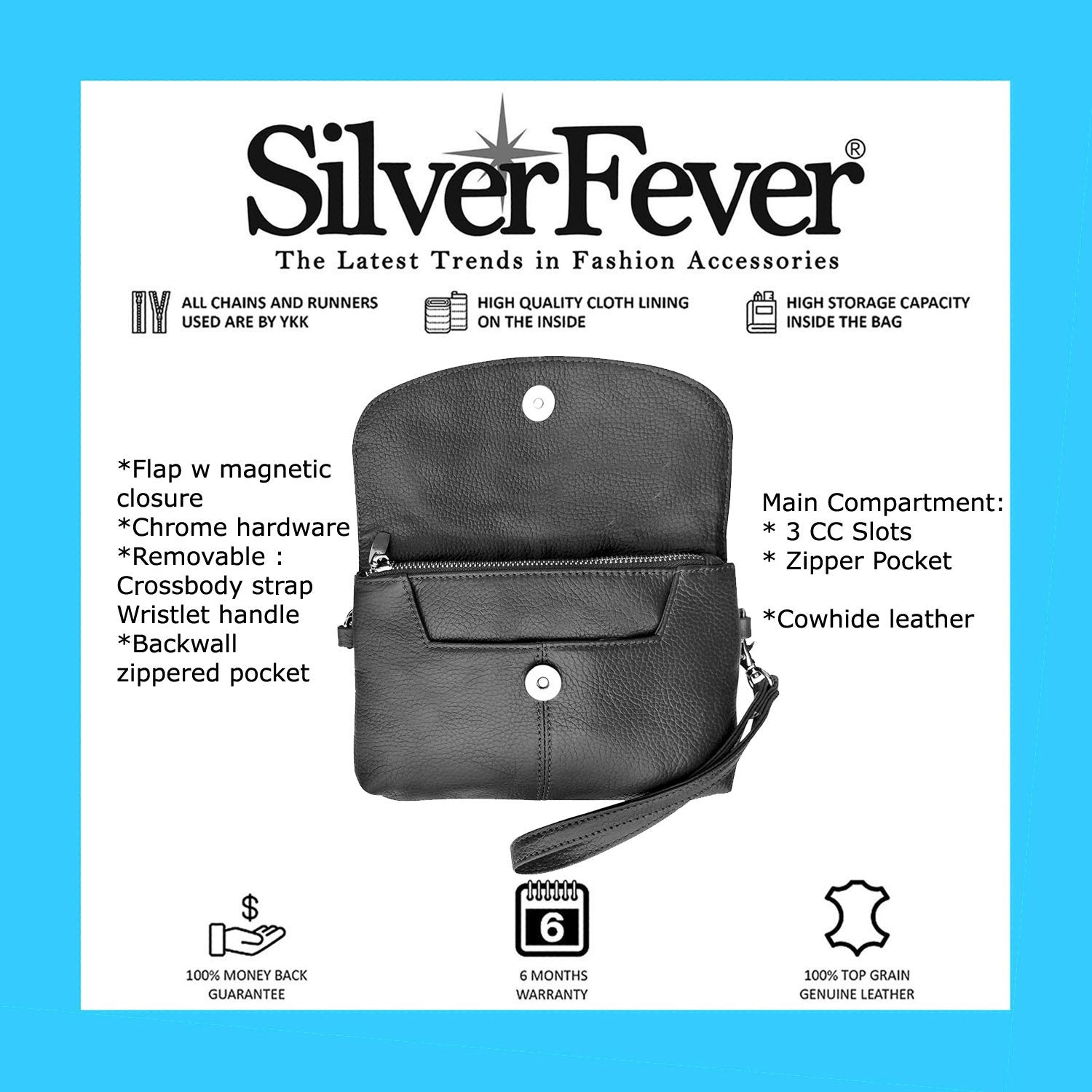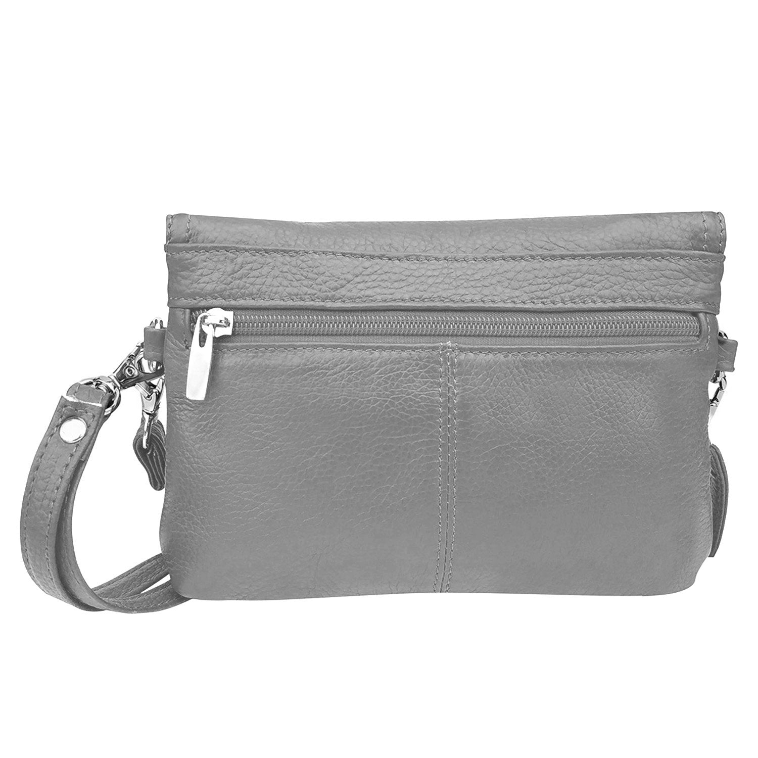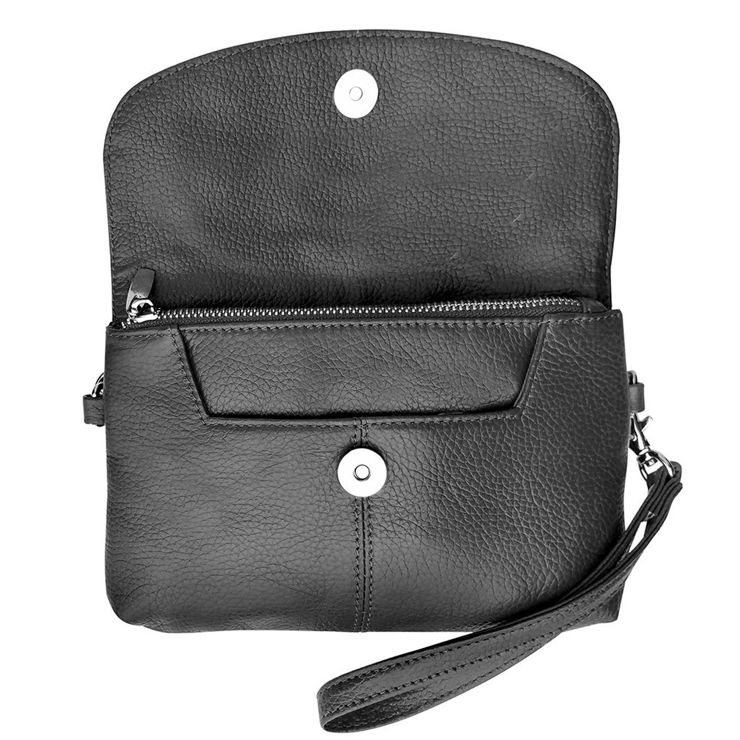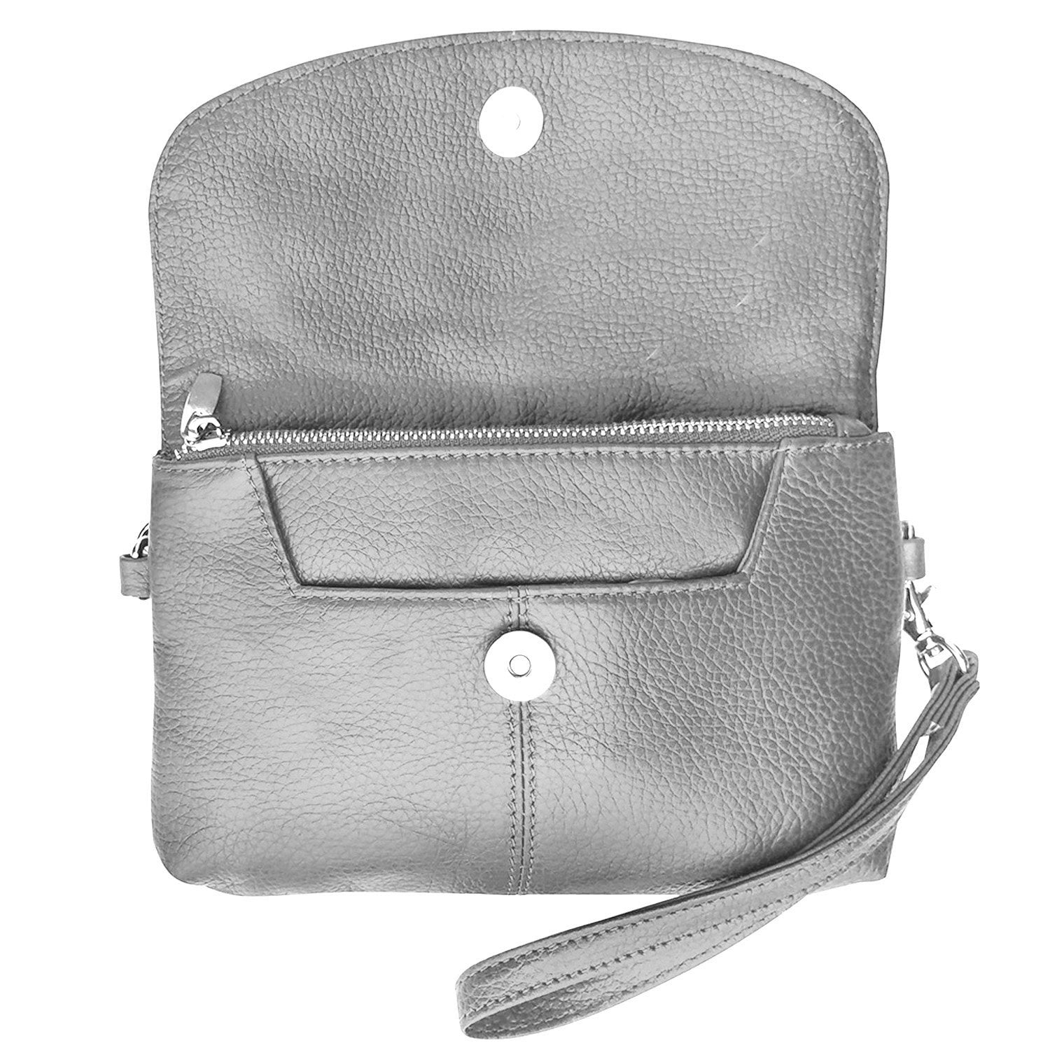Leather Handbag Purse Womens Small Clutch Wristlet Crossbody Multi Compartment Organiser Fits Phone SilverFever