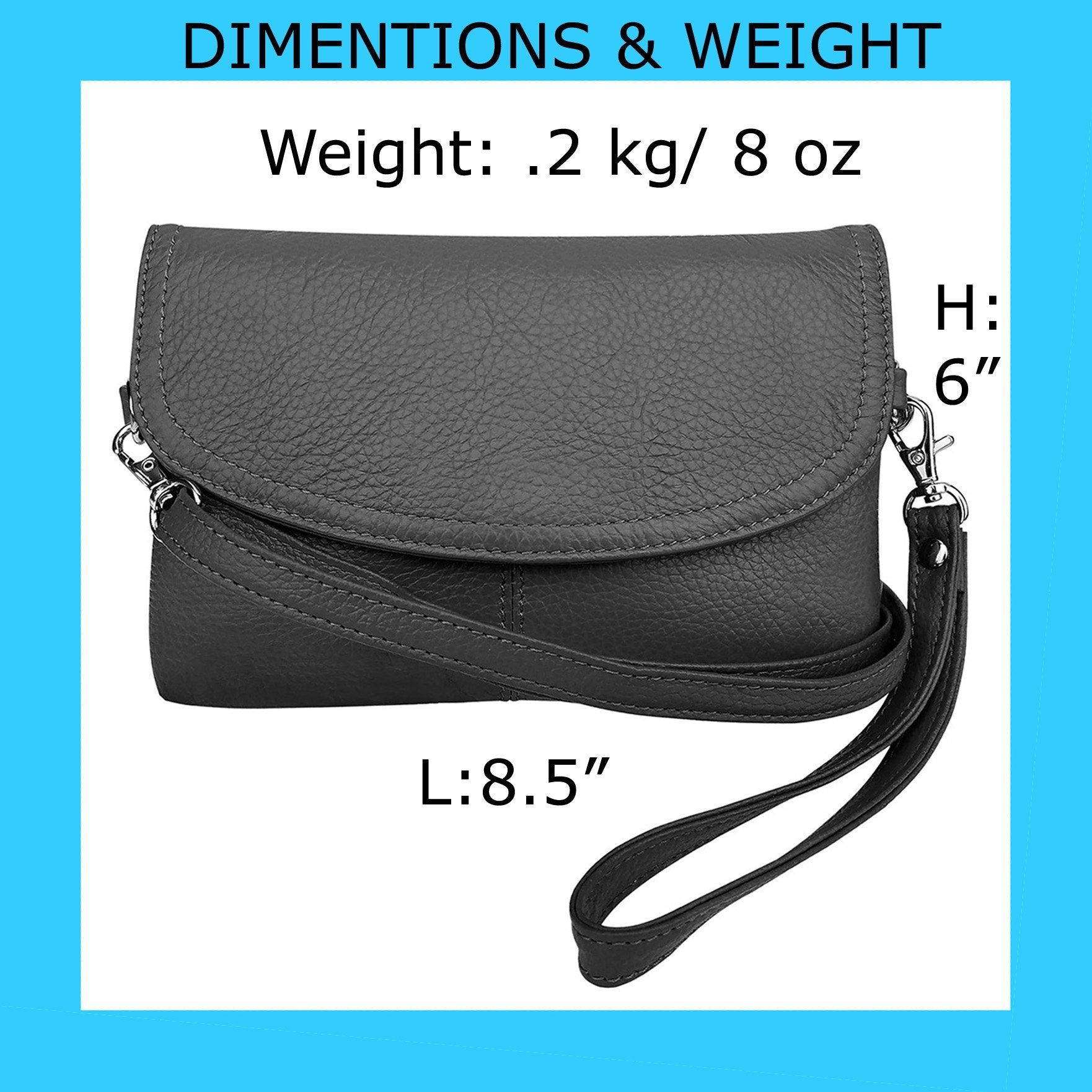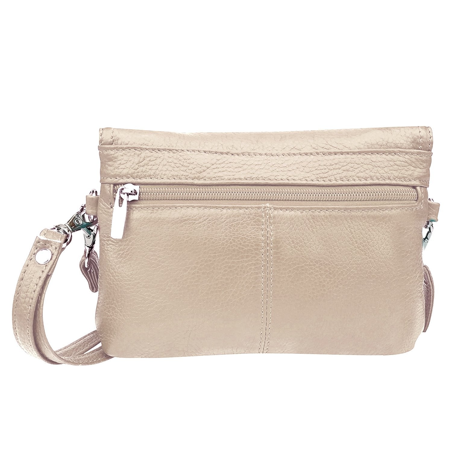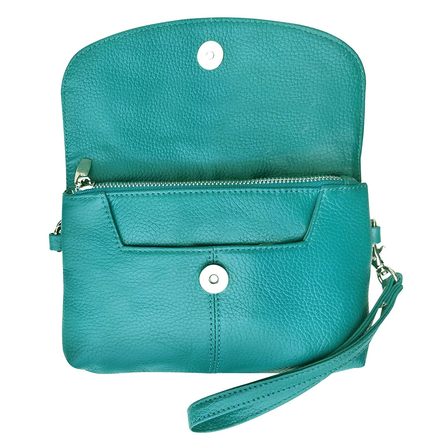 Leather Handbag Purse Womens Small Clutch Wristlet Crossbody Multi Compartment Organiser Fits Phone SilverFever