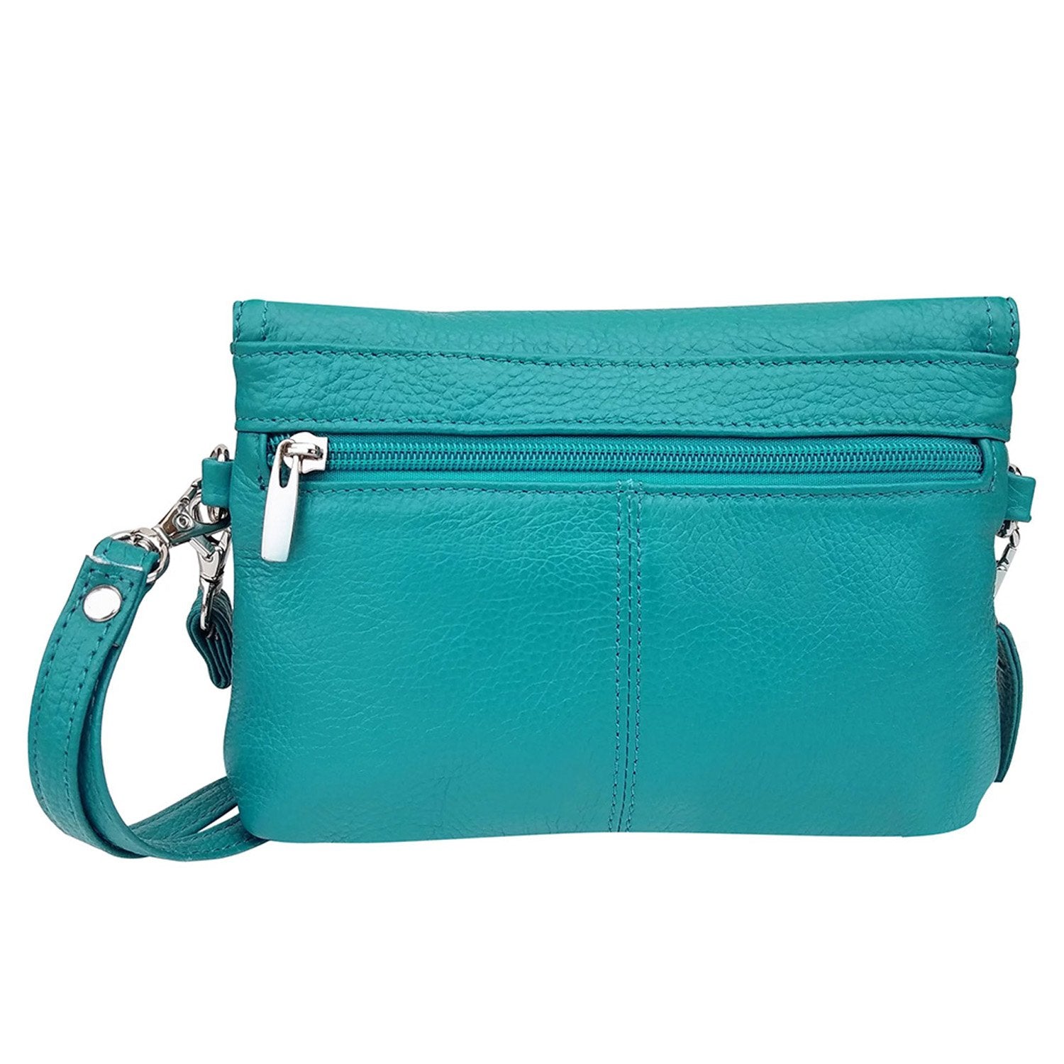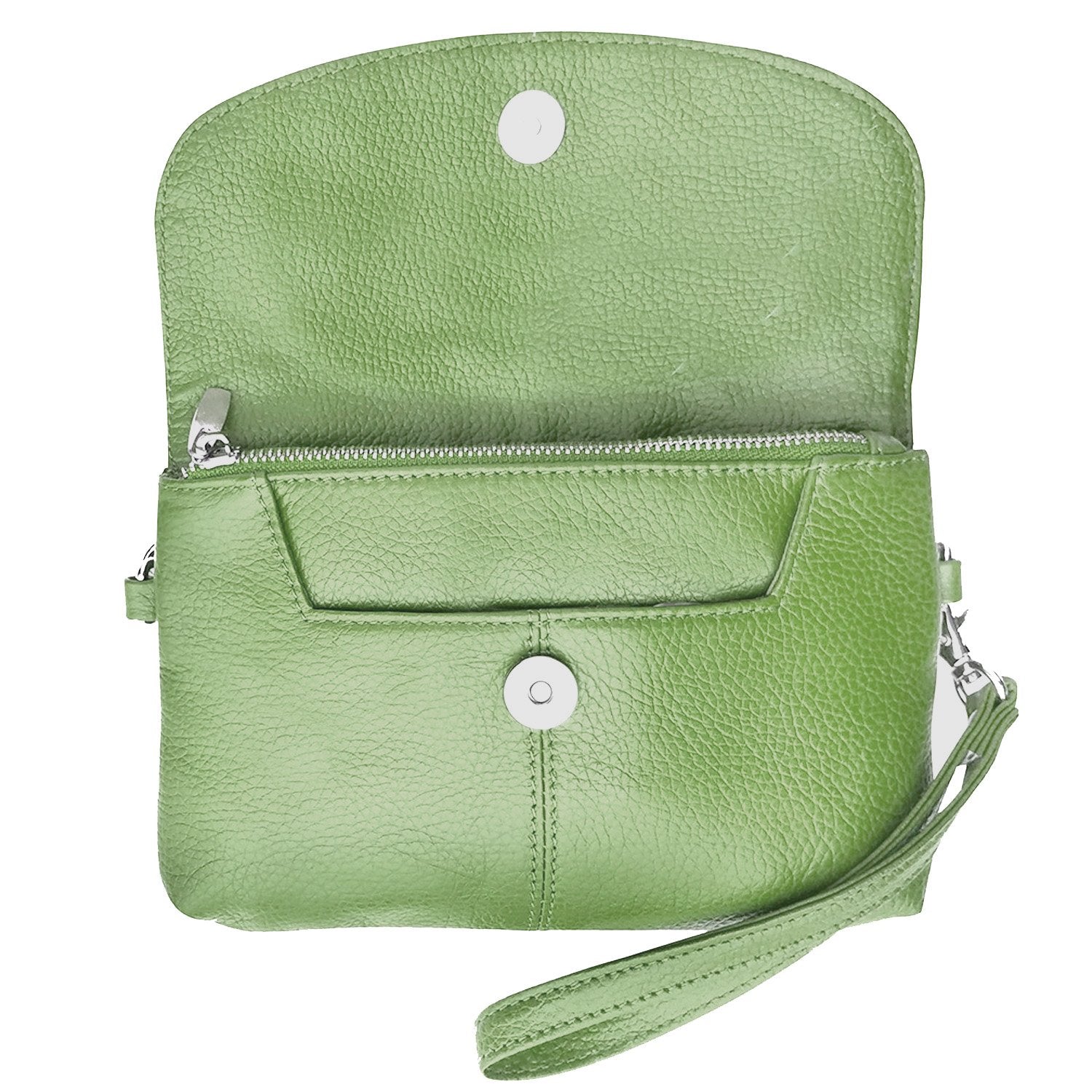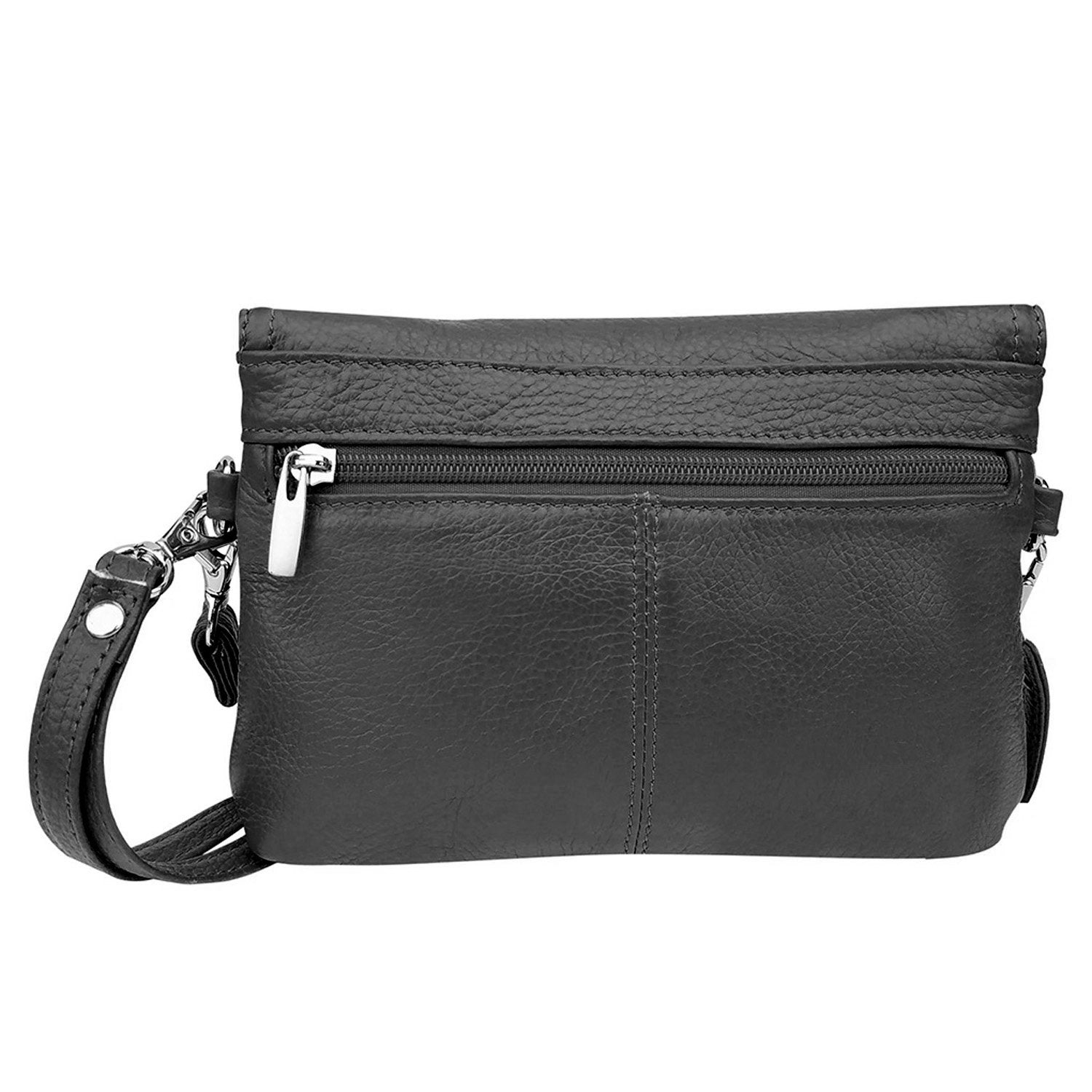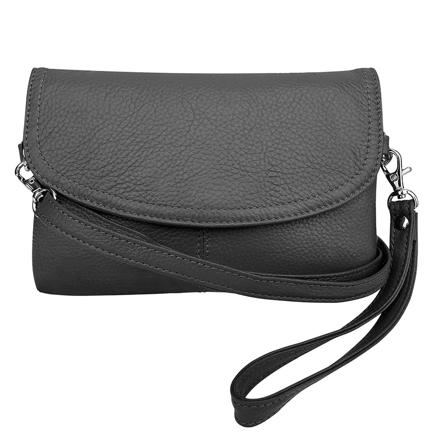 Leather Handbag Purse Womens Small Clutch Wristlet Crossbody Multi Compartment Organiser Fits Phone SilverFever