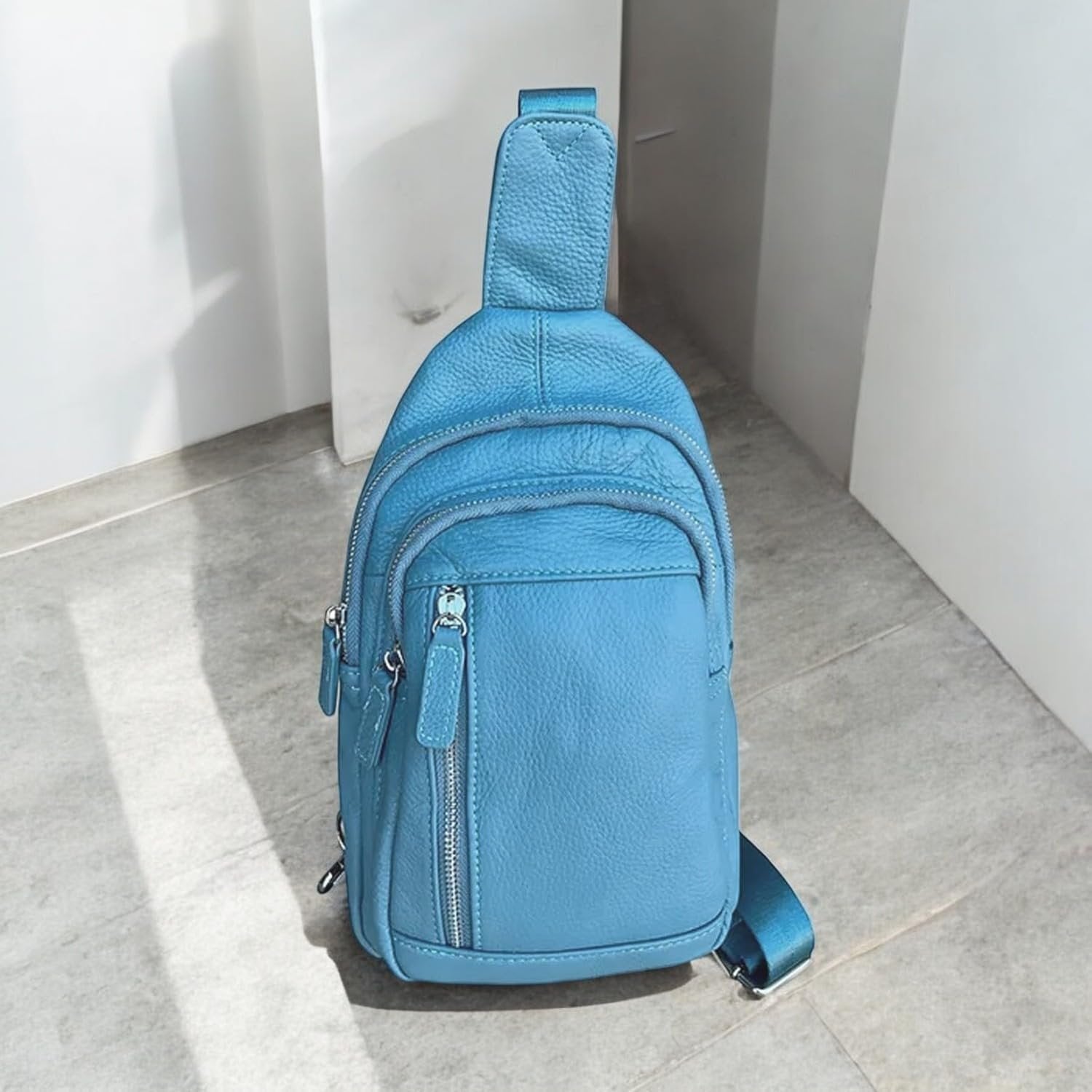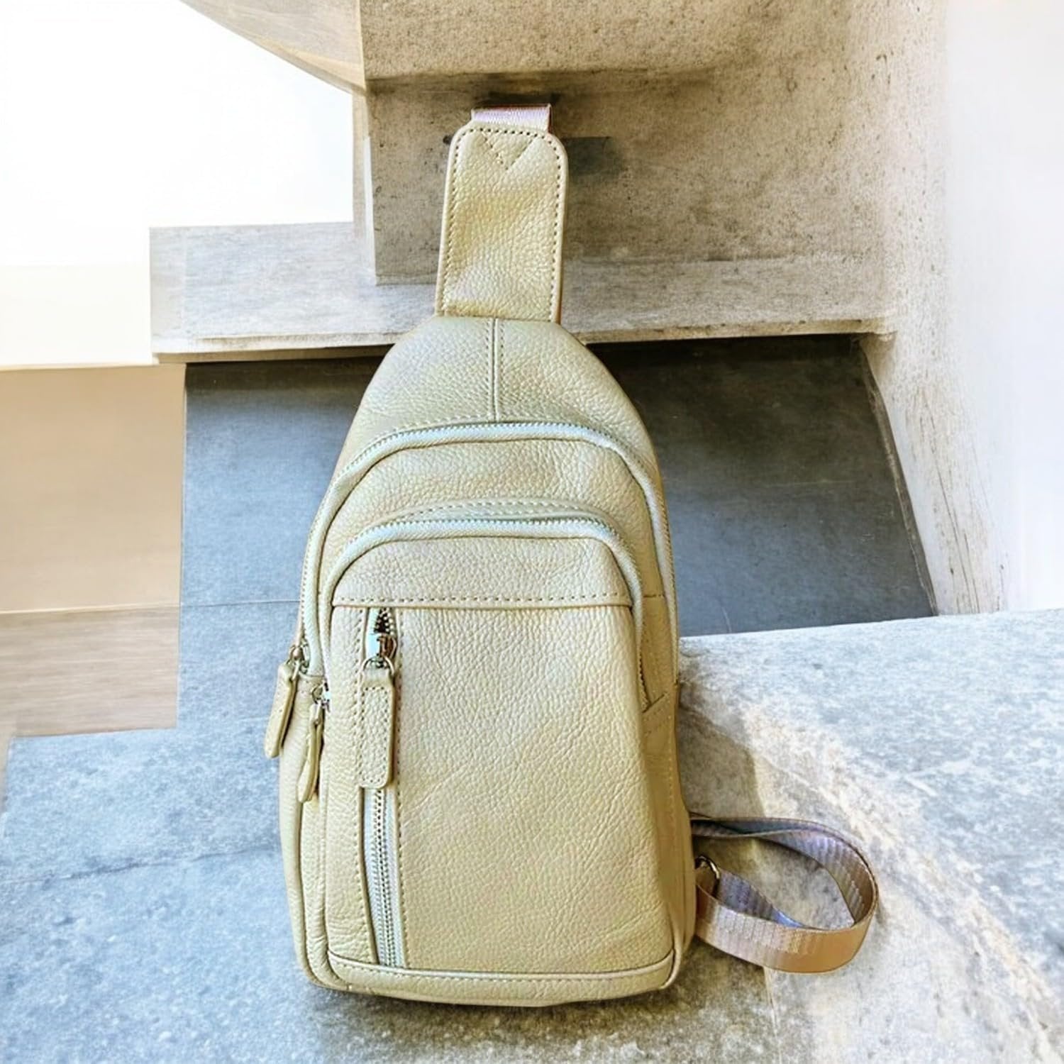 SILVERFEVER Women's Cross Body Sling Leather Bag Chest Bag Daypack Fanny Pack for Every Day, Hiking, or Traveling (Grey)