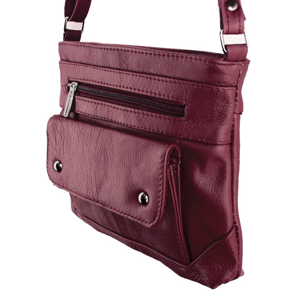 Silver Fever is highly committed to providing superior, quality products and satisfaction. We are unable to authenticate or ensure the quality of similar products purchased through other sellers. Lighten up – travel free and easy with this mart Cross Body Leather Handbag! Say Bon Voyage to being weighed down with heavy purses, billfolds, wallets and more. This mini purse has three compartments (two zipped pocket on each side) and adjustable strap. Main zippered pocket contains a cell phone compartment and one small zipped pocket. The zippered pockets securely hold your credit cards, cash and identification and free you from the need to carry your heavy wallet.REAL LEATHER Silver Fever Brand Medium/Small Organizer Handbag. Leave your bulky handbag at home and enjoy this perfect sized genuine leather handbag, perfect for everyday carry and travel.AFFORDABLE AND DURABLE. Don’t sacrifice quality for price. This leather handbag will last long term and won’t break the bank.ORGANIZED STYLE. Stay trendy without sacrificing personal organization. This cute mid-sized handbag includes exterior and interior pockets for all of your everyday items.8.5"L x 7" H, w/52" Adjustable Shoulder Strap.PACKED WITH FEATURES. This bag’s top zippered closure, multipurpose compartments, versatile pockets, and adjustable shoulder strap will keep your belongings safe and secure. Removable FREE GIFT - Silver Fever Signature Key Chain Purse Flashligh. Usefull at night, in restorants, to find small item in a purse, etc.PERFECT SIZE FOR EVERYDAY USE. Deep main compartment. Spacious main compartment is on top. Zipper pocket is on the front of the bag. Pocket with over flap able to fit most touch Screen cell phones. The back of the bag has 1 zipper pocket. Adjustable and removable shoulder strap. I pad compatible. "