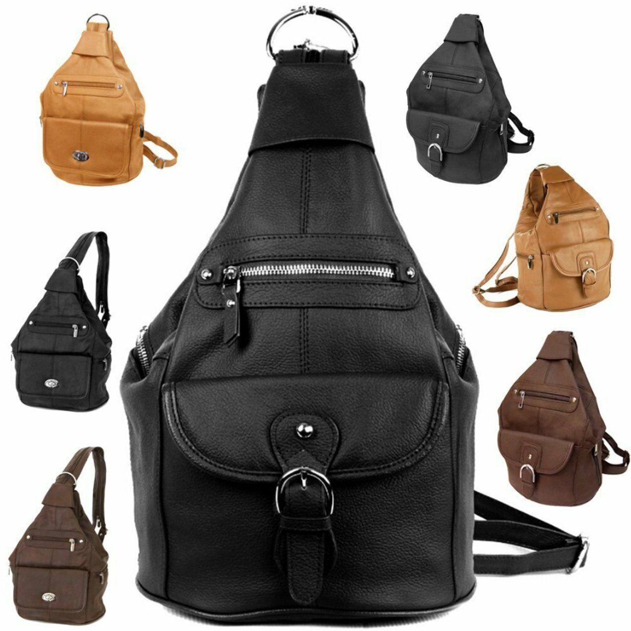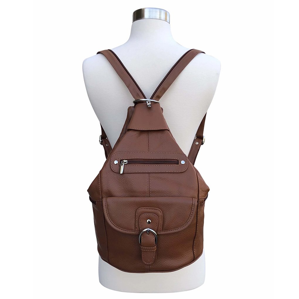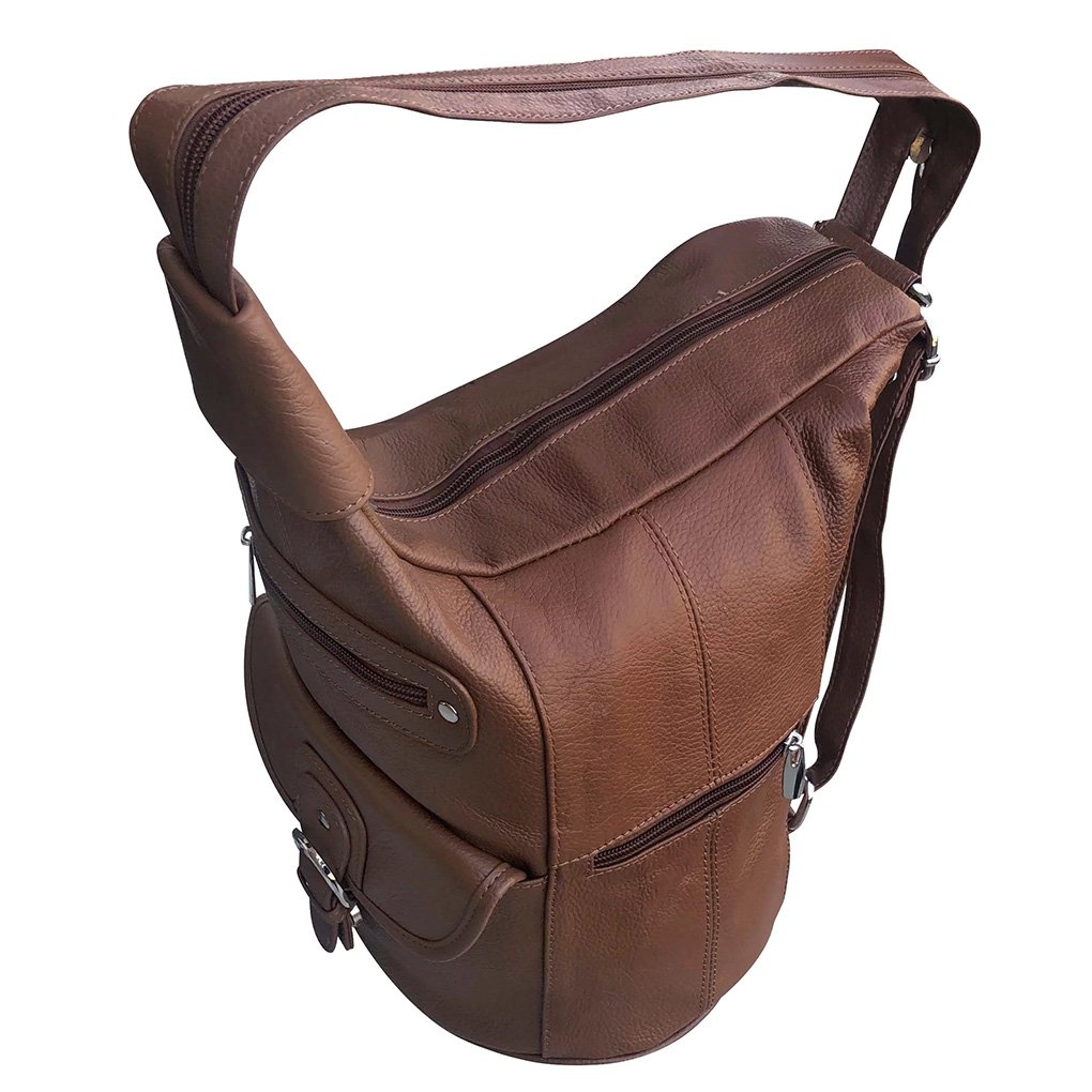 Women's Cowhide Leather Backpack Convertible Sling One Shoulder Large Bag Secure Entry |7 Pocket