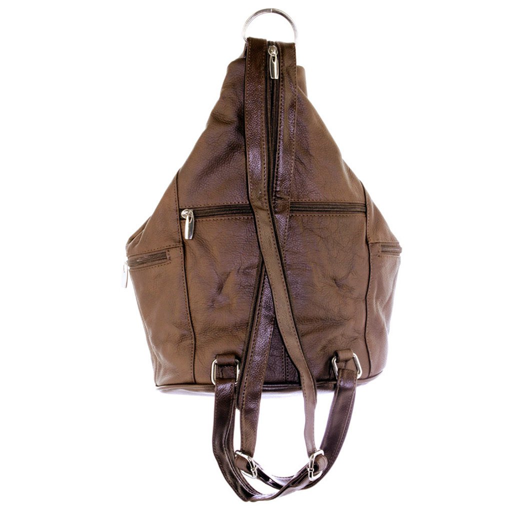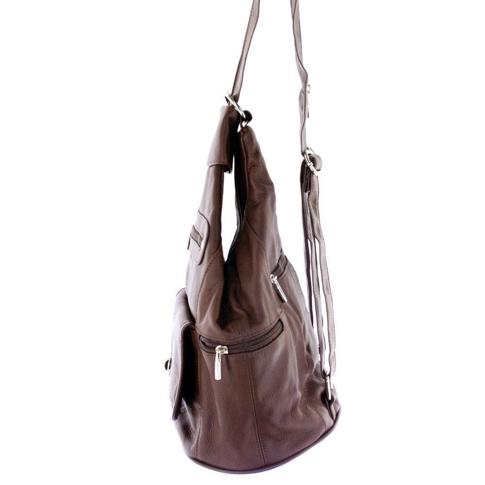 Silver Fever is highly committed to providing superior, quality products and satisfaction. We are unable to authenticate or ensure the quality of similar products purchased through other sellers. Functionality meets the best in fashion! This Genuine Leather Sling Backpack Purse Organizer is perfect for the girl who knows great fashion, but is in need of a practical handbag to go along with her busy lifestyle. Wear it across both shoulders like a traditional backpack or over one shoulder zipped. This stylish handbag will help keep you and all your necessities organized. Also check out other great styles and colors of organizer backpack handbags in our collection.Genuine Leather w/a reinforced zippered closureMeasures Approx: 13"H x 9"L x 5.5"WSilver Fever 1 Year Limited Warranty against manufacturing defectsAdjustable Shoulder StrapMultipurpose Compartments and PocketsMultipurpose Compartments and Pockets