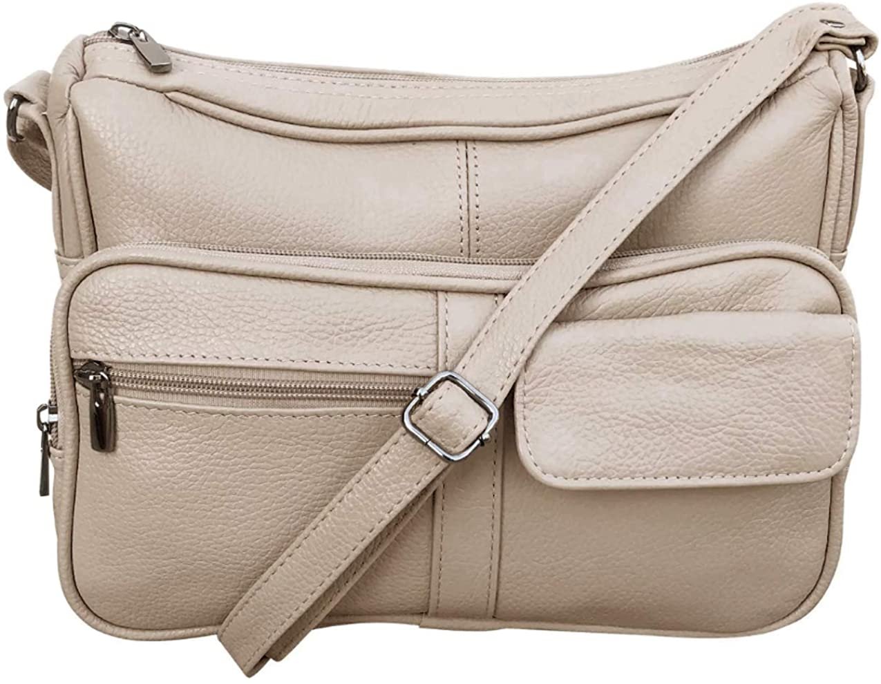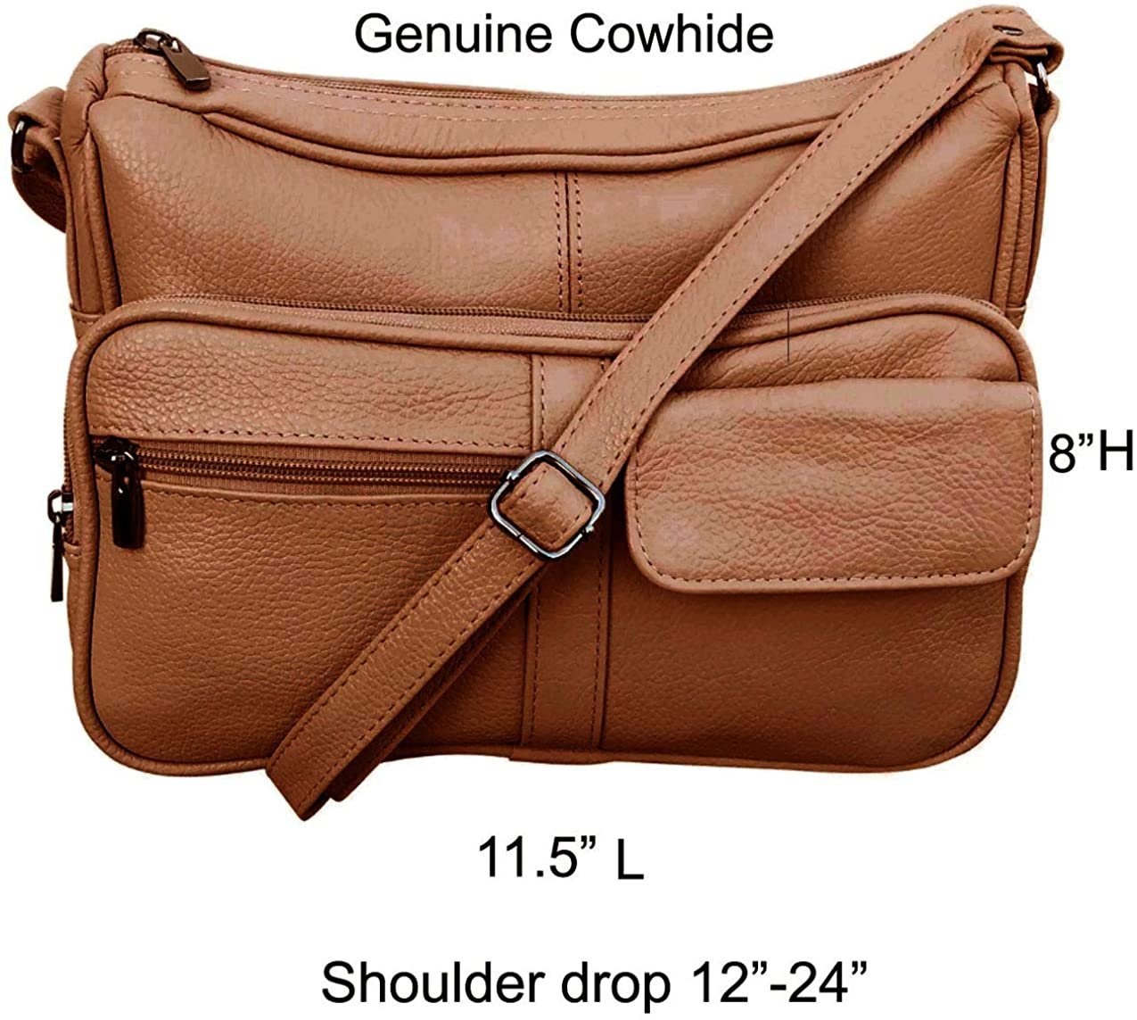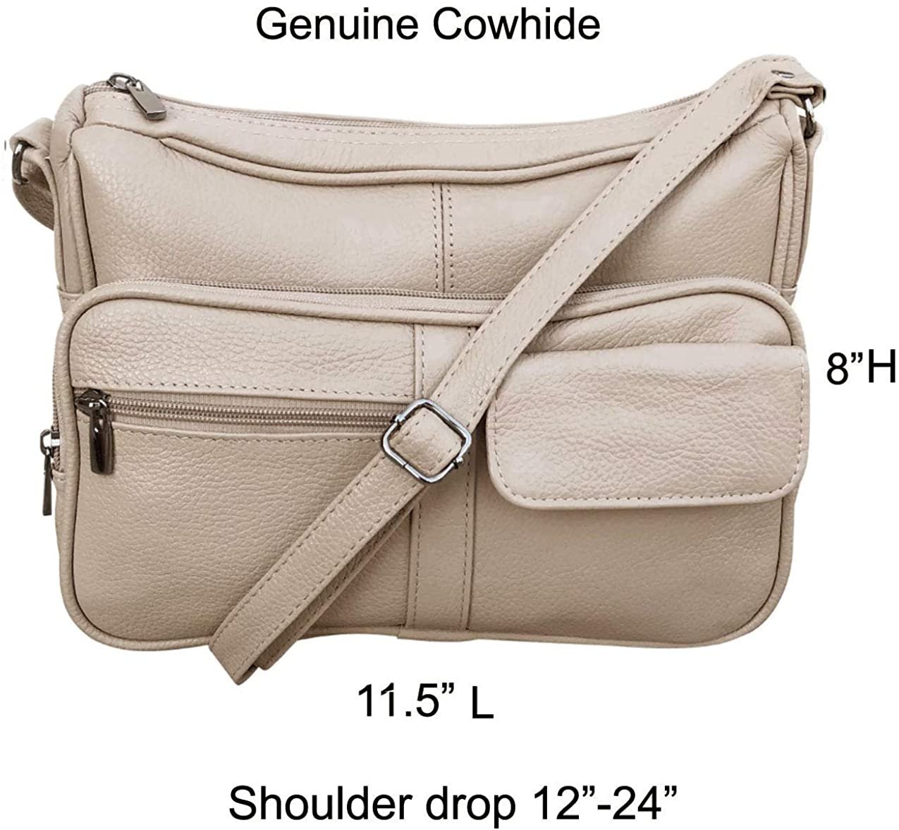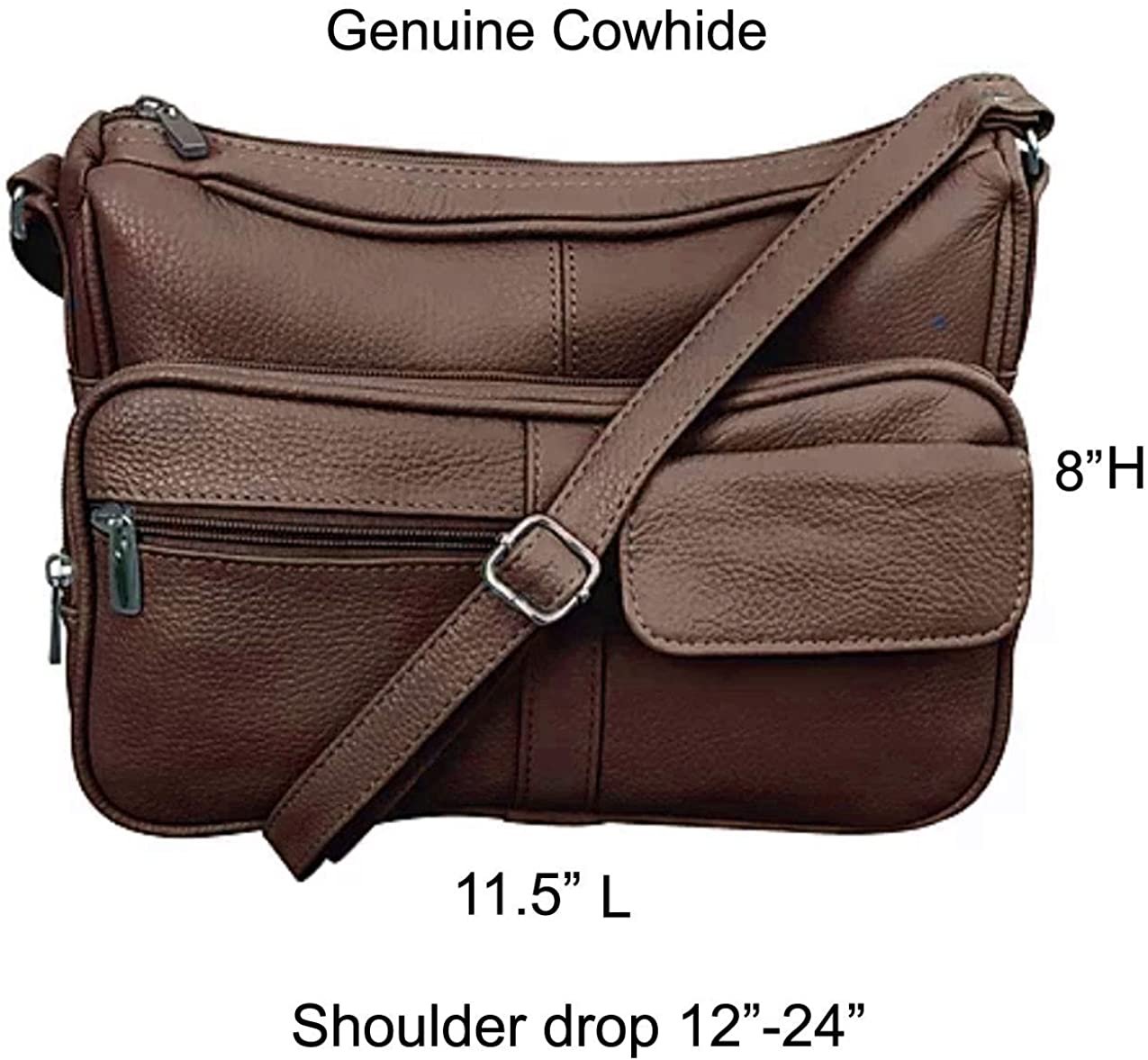 Lighten up – travel free and easy with the Soft Genuine Leather Ladies Medium Shoulder Hobo Organizer! Say Bon Voyage to being weighed down with heavy purses. This handy handbag sports an adjustable leather strap that is wide and comfortable and loads of exterior and interior pockets to keep all of your must-haves in place. Silver Fever is highly committed to providing superior, quality products and satisfaction. We are unable to authenticate or ensure the quality of similar products purchased through other sellers.Genuine Leather, CowhideREAL LEATHER SILVERFEVER Brand Medium/Large Organizer Handbag. Leave your bulky handbag at home and enjoy this perfect sized genuine leather handbag, perfect for everyday carry and travel.AFFORDABLE AND DURABLE. Don’t sacrifice quality for price. This leather handbag will last long term and won’t break the bank.ORGANIZED STYLE. Stay trendy without sacrificing personal organization. This cute mid-sized handbag includes exterior and interior pockets for all of your everyday items.PACKED WITH FEATURES. This bag’s top zippered closure, multipurpose compartments, versatile pockets, and adjustable shoulder strap will keep your belongings safe and secure. Removable FREE GIFT - Silver Fever Signature Key Chain Purse Flashligh. Usefull at night, in restorants, to find small item in a purse, etc.PERFECT SIZE FOR EVERYDAY USE. Measures Approx: 11" x 7.5" x 3", 12-24" Adjustable Strap Drop. With Great clearence price,This medium crossbody purses for women is perfect for travel. Built in wallet purse is safe, adjustable crossbody option and plenty of pockets make this medium bag most roomy for everyday traveling, etc.