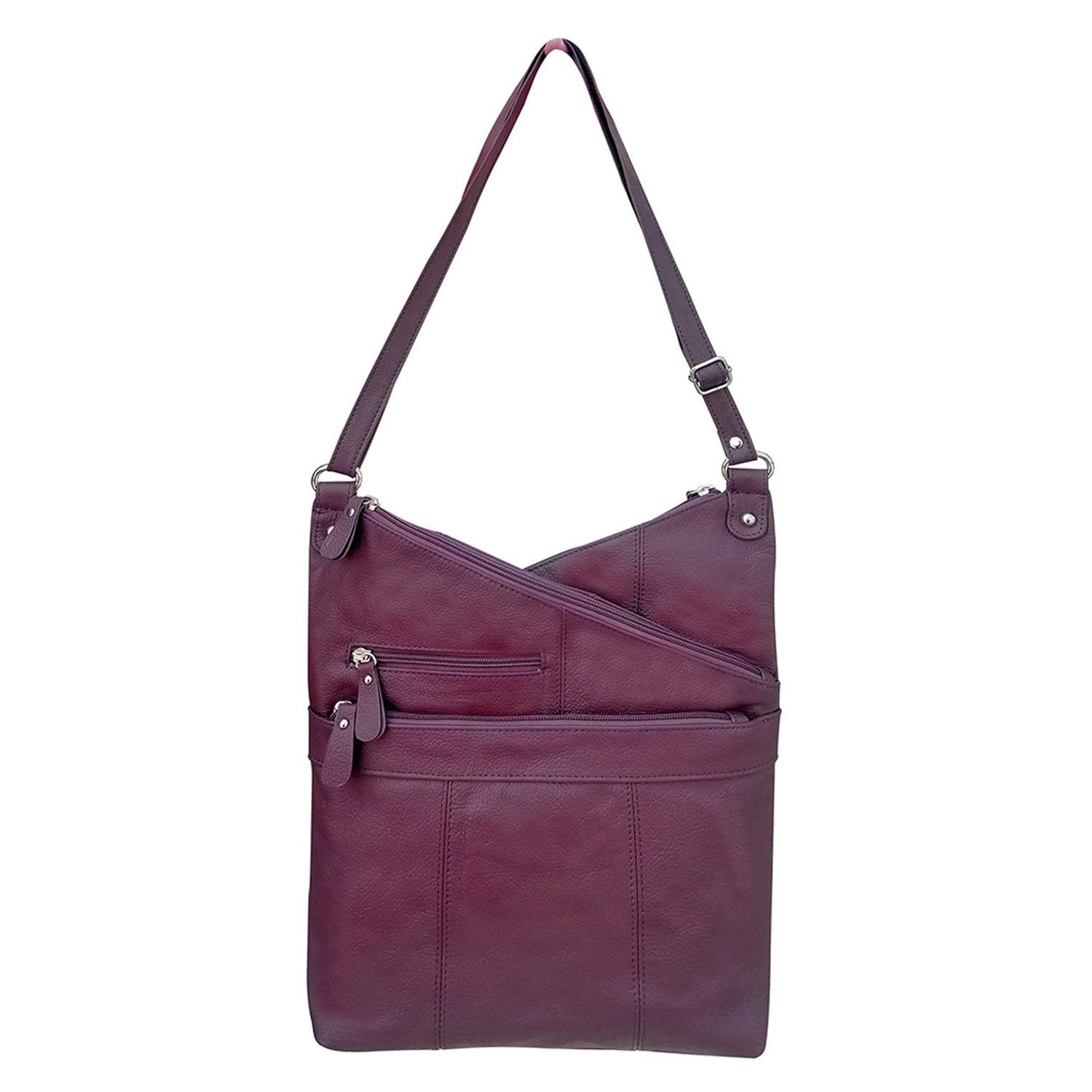 Silver Fever is highly committed to providing superior, quality products and satisfaction. We are unable to authenticate or ensure the quality of similar products purchased through other sellers. Lighten up – travel free and easy with this mart Cross Body Leather Handbag! Say Bon Voyage to being weighed down with heavy purses, billfolds, wallets and more. This mini purse has three compartments (two zipped pocket on each side) and adjustable strap. Main zippered pocket contains a cell phone compartment and one small zipped pocket. The zippered pockets securely hold your credit cards, cash and identification and free you from the need to carry your heavy wallet.REAL LEATHER Silver Fever Brand Medium Organizer Handbag. Leave your bulky handbag at home and enjoy this perfect-sized genuine leather handbag, perfect for everyday carry and travel.AFFORDABLE AND DURABLE. Don’t sacrifice quality for price. This leather handbag will last long term and won’t break the bank.ORGANIZED STYLE. Stay trendy without sacrificing personal organization. This cute mid-sized handbag includes exterior and interior pockets for all of your everyday items.PACKED WITH FEATURES. This bag’s top zippered closure, multipurpose compartments, versatile pockets, and adjustable shoulder strap will keep your belongings safe and secure. Removable FREE GIFT - Silver Fever Signature Key Chain Purse Flashligh. Usefull aPERFECT SIZE FOR EVERYDAY USE. Measures Approx:9.5*10.5*2, 12-24"" Adjustable Strap Drop. 1 slip and 1 sipped front pocket.Spacious main compartment with a small zipper pocket inside . Wide zipper pocket on the back of the bagPERFECT SIZE FOR EVERYDAY USE. Measures Approx:9.5*10.5*2, 12-24"" Adjustable Strap Drop. 1 slip and 1 sipped front pocket.Spacious main compartment with a small zipper pocket inside . Wide zipper pocket on the back of the bag