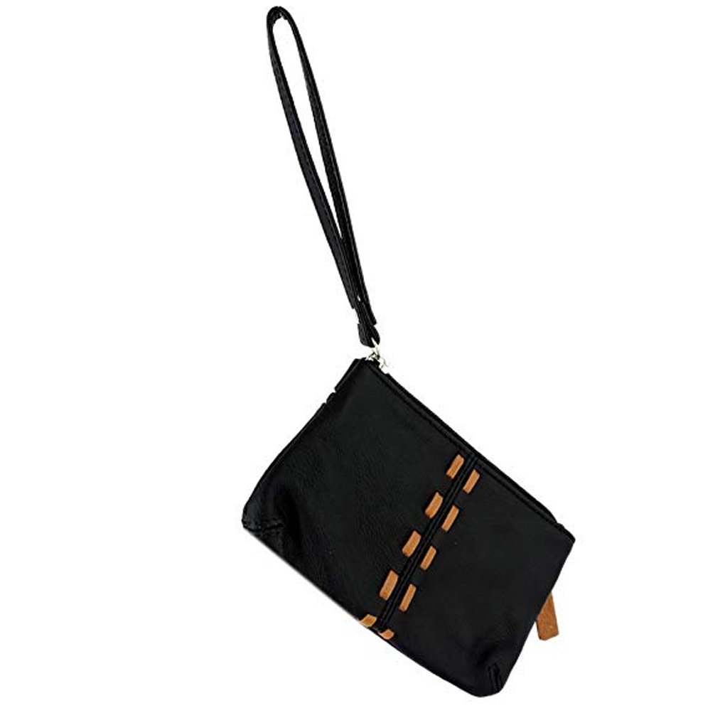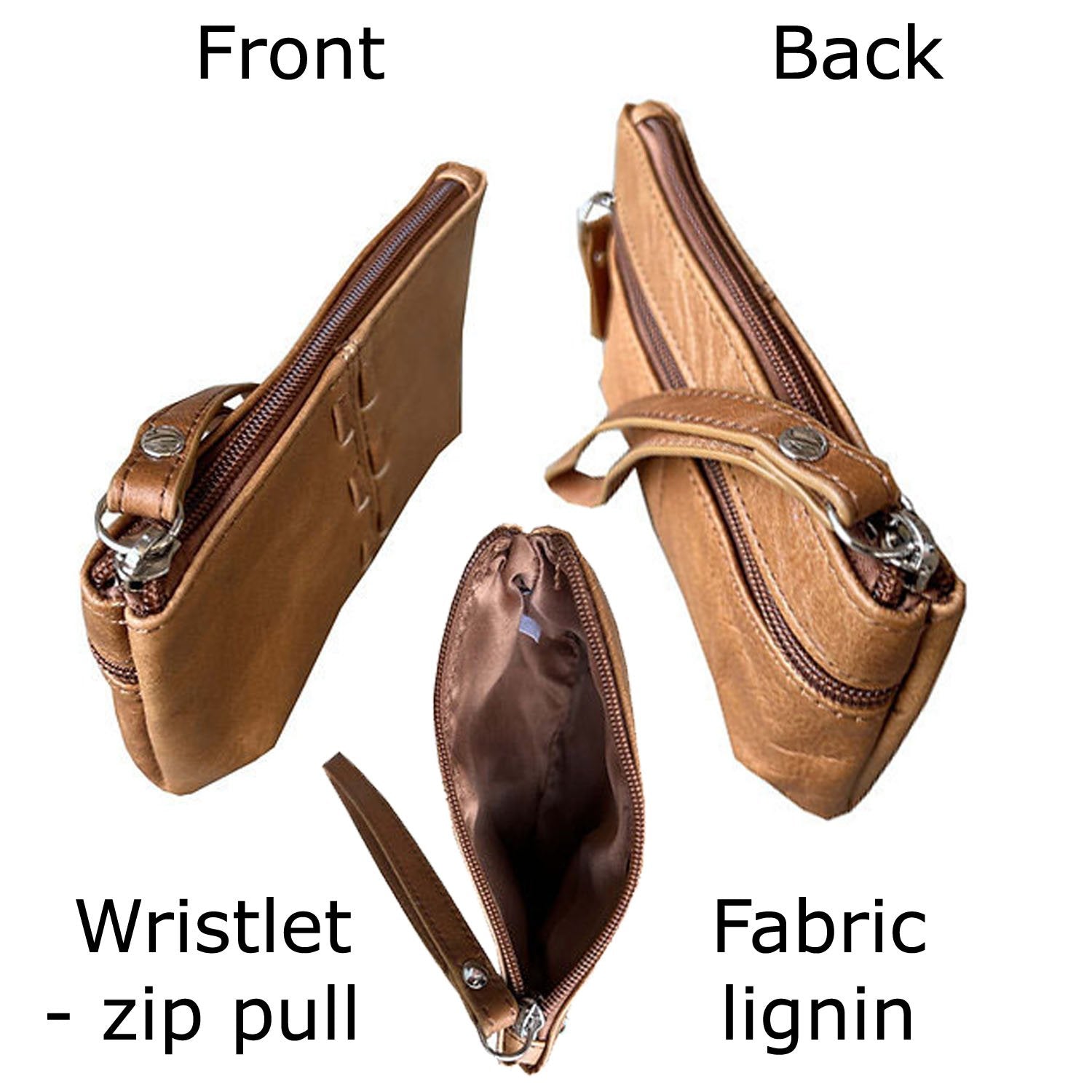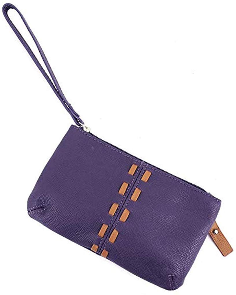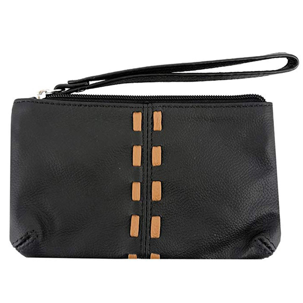 Women's Leather Wristlet Small Wallet Clutch with Whipstitched Detail