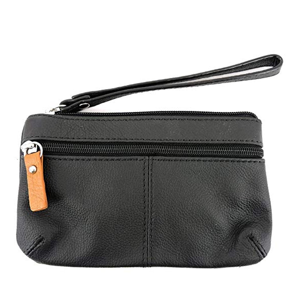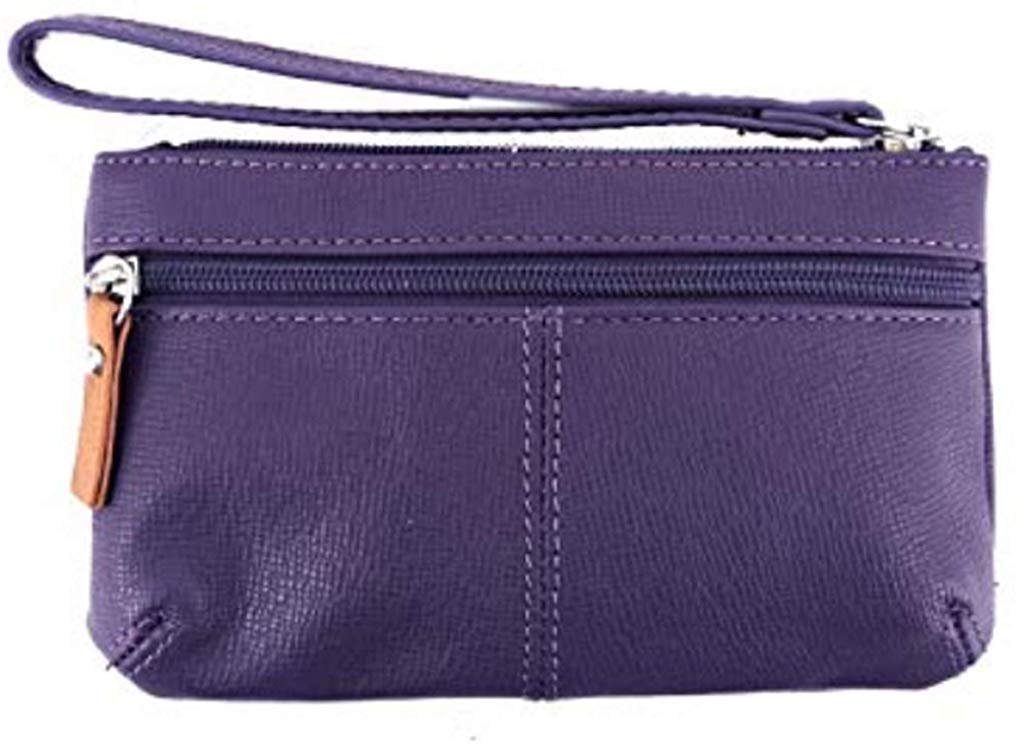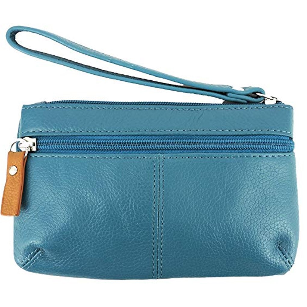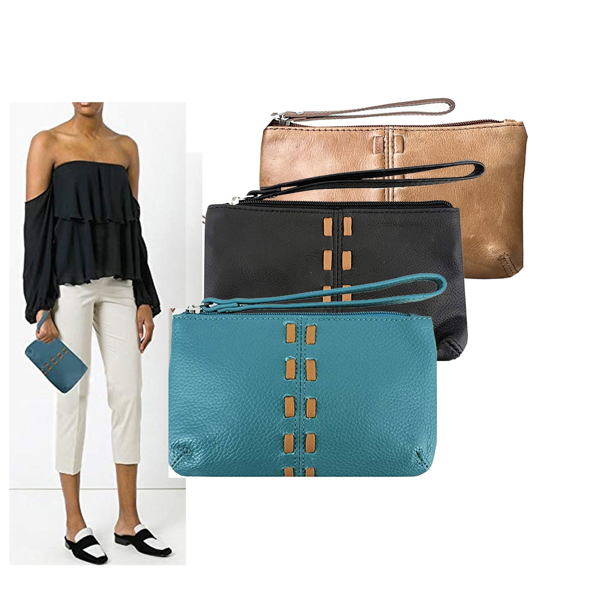 Women's Leather Wristlet Small Wallet Clutch with Whipstitched Detail